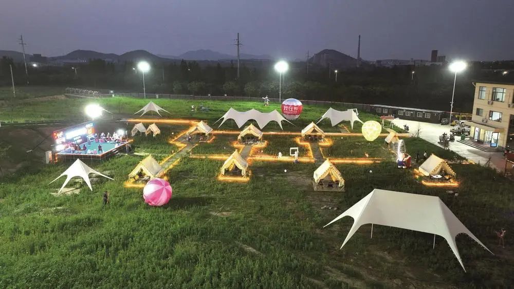 暮色掩映下,东高河村冰雪高河露营基地悄然换装,一方绿意盎然的营地,成了逃离喧嚣的微缩秘境。帐篷点缀其间,暖黄灯光与天际霓虹温柔对话,枕着大地,仰望并非纯粹的星河,却有城市灯火为幕,在繁华咫尺之遥,独享这一方星空下的静谧与野趣。