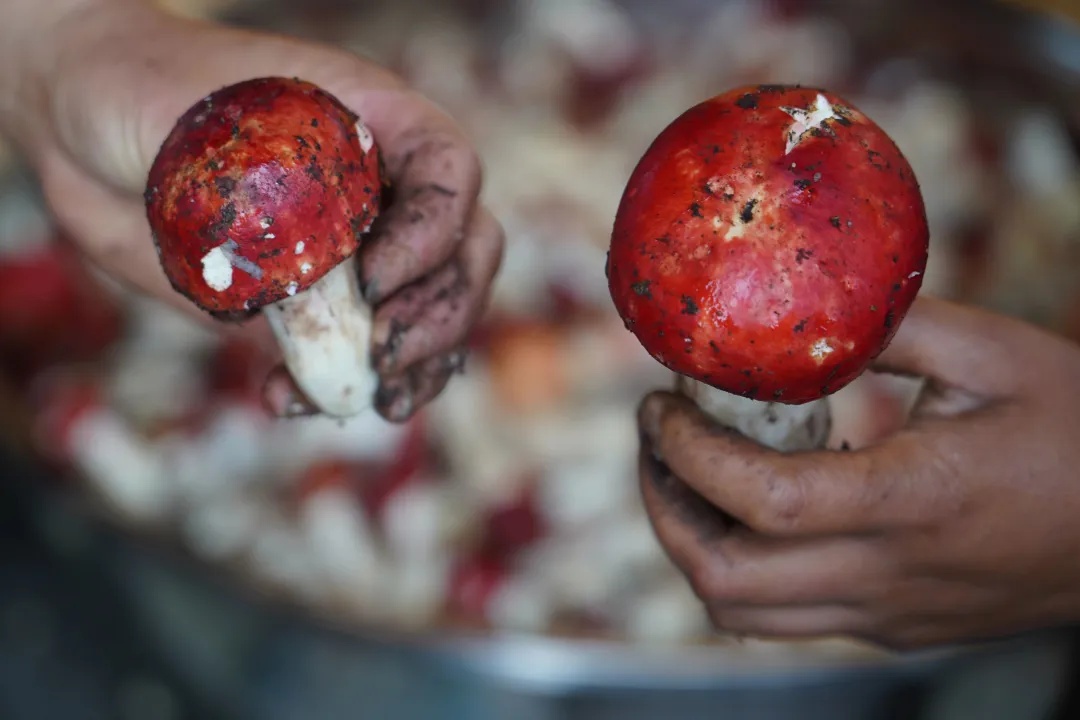 “中毒?那是没炒熟!”头年中毒躺过医院,次年照采不误;暴雨天摔进泥坑,爬起来先护好筐里的鸡枞。用云南人的话说:“大自然给的快乐,哪能因为这点小插曲就放弃?”