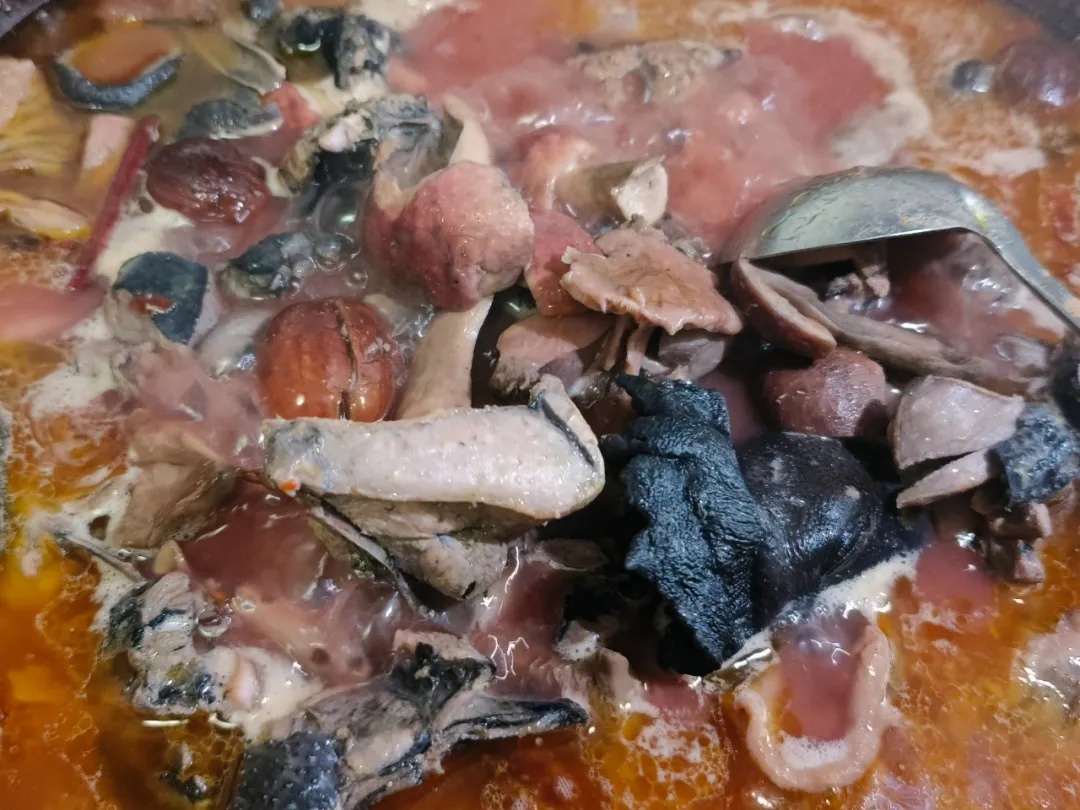 找回来的野生菌,腾冲人有专属的做法。大红菌的最佳搭档是土鸡或洋芋:与土鸡同炖,汤色红得像琥珀,油花浮在表面,喝一口鲜得直咂嘴;和洋芋共煮更妙,洋芋吸饱菌香,粉糯得抿嘴就化,则带菌子的甜,连汤都要泡饭喝。