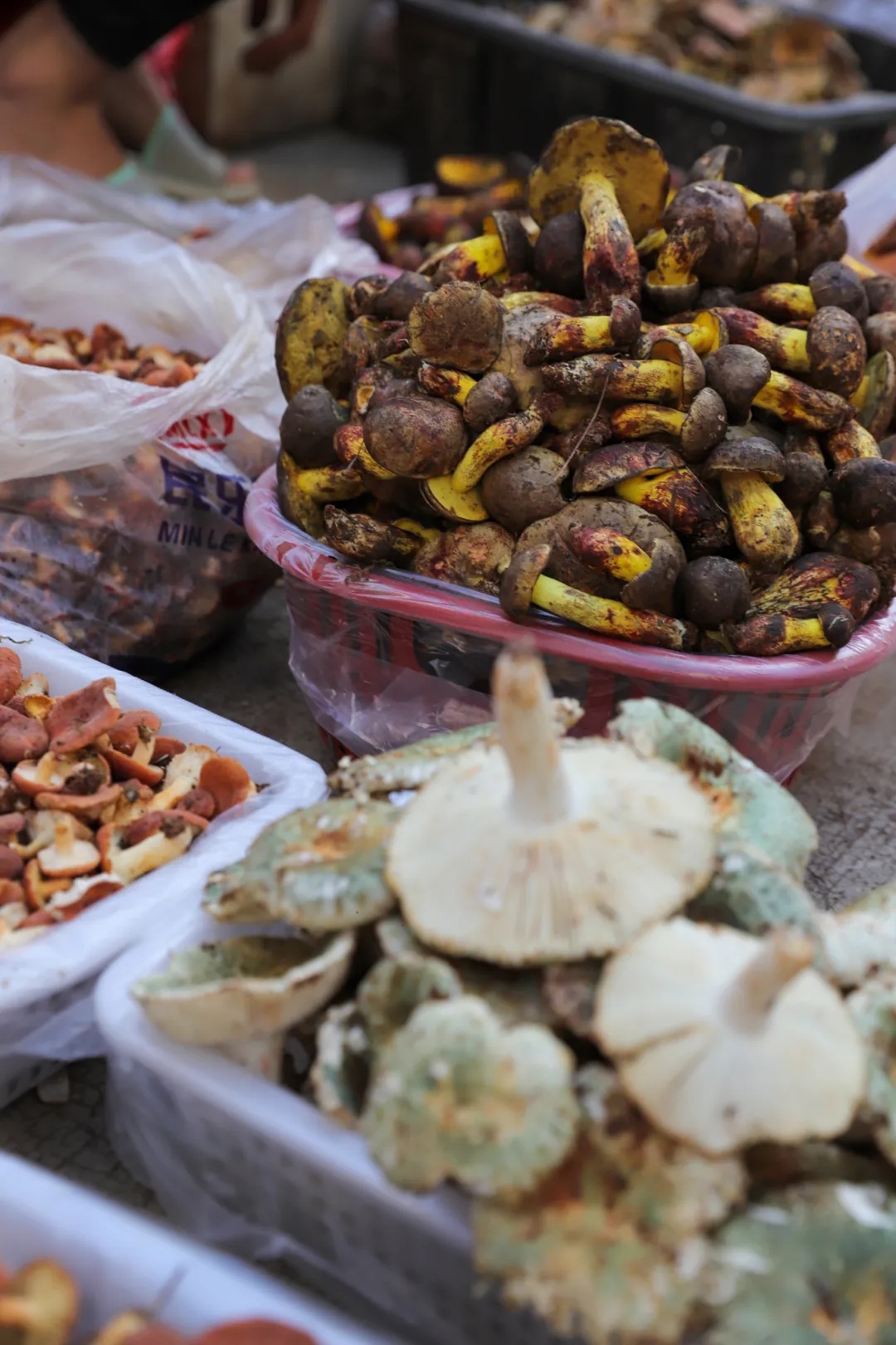 这份底气,来自云南的 “天然菌子宝库”。从湿热河谷到凉爽山顶,近千种可食用野生菌在此野蛮生长。雨季一来,菌子就冒出头来,大红菌顶着红袍破土,鸡枞撑着白伞钻出白蚁巢,奶浆菌被碰一下就淌出 “牛奶”……