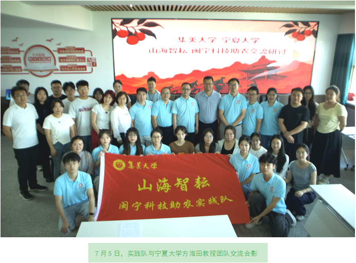 山高路远,阻不断闽宁情深。29年来,闽宁之间从单向扶贫到产业对接,从经济援助到社会事业多领域深度合作,形成了独具特色的“闽宁模式”。为延续闽宁“优势互补、互利互惠、长期协作、共同发展”的合作宗旨,7月5日-10日,由援宁福建省科技特派员肖安风教授等带领的集美大学“山海智耘——闽宁科技助农”实践队,积极发挥学术科研优势,前往宁夏多地展科技助农实践活动,以实际行动续写闽宁协作的时代新篇。