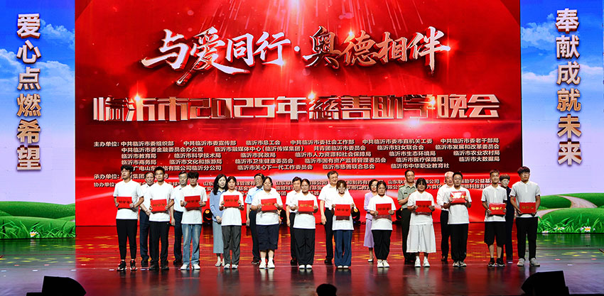 晚会现场为受助大学新生和中、小学生代表发放了助学金,并为爱心企业、慈善助学先进单位代表等颁奖。晚会以节目演出、播放助学视频短片等形式进行。在慈善助学视频短片中,沂水县崔家裕镇的许小乐、莒南县十字路街道的张煜煜、沂南县依汶镇的汤桠铄等几个困境家庭的孩子,用勤奋好学向着人生理想坚实前行的励志故事,深深触动着每一位现场观众的心。
