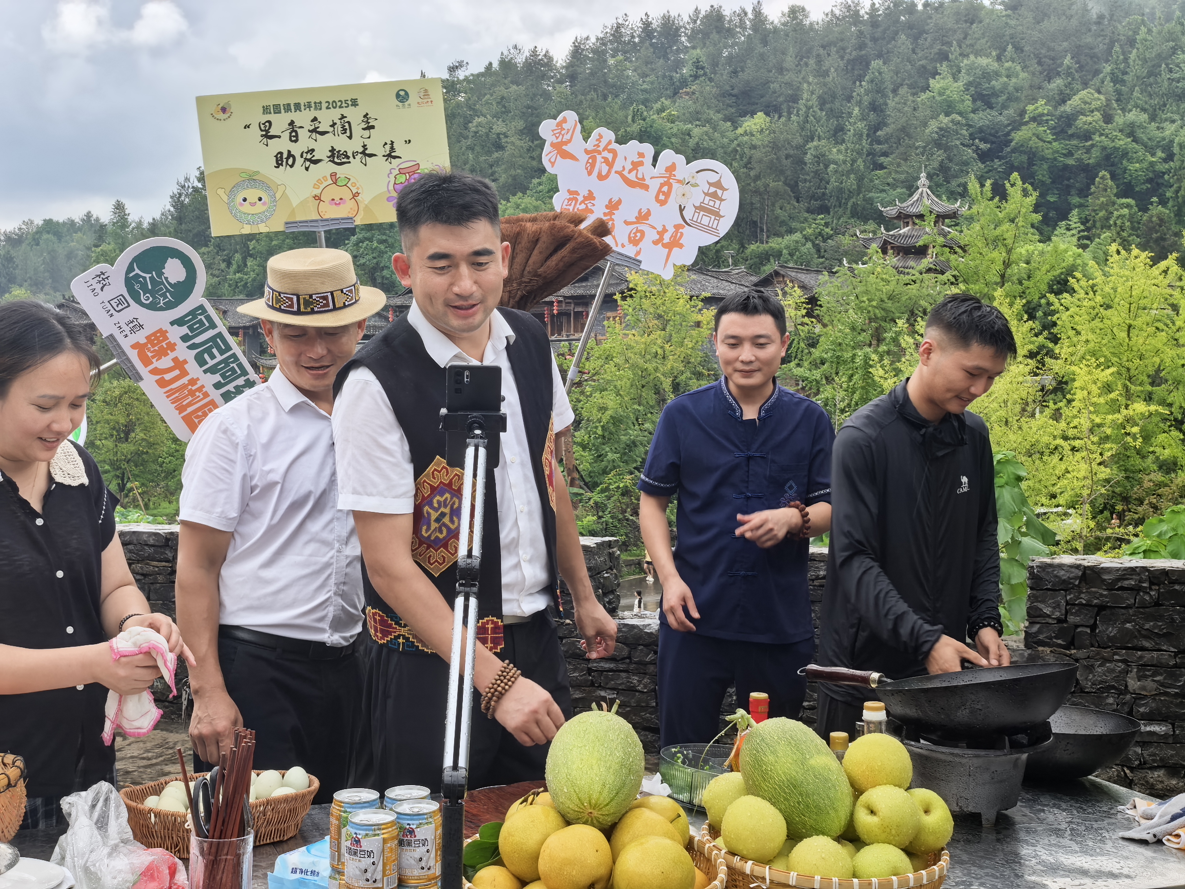 直播达人线上销售椒园黄金梨等特色水果。