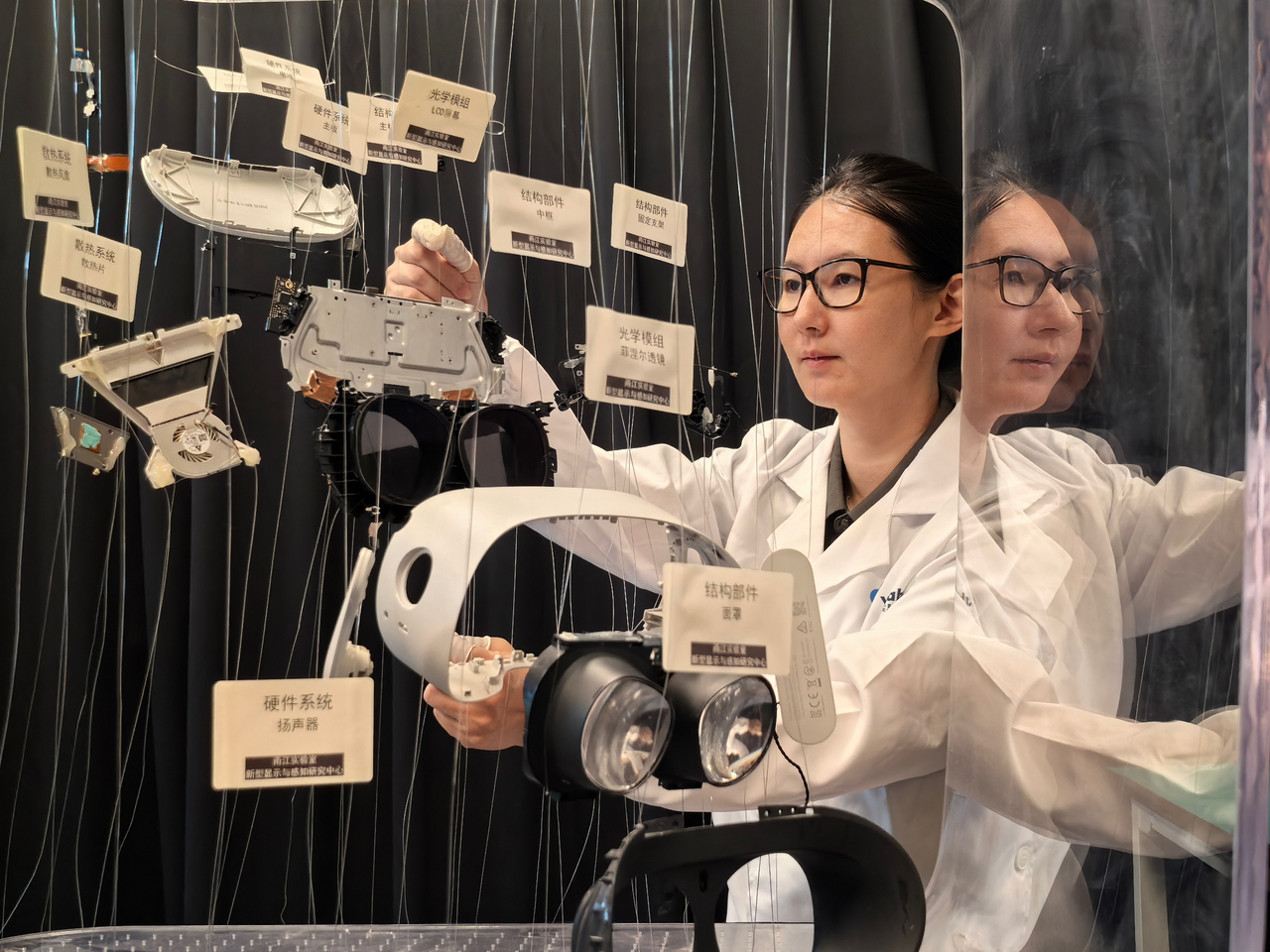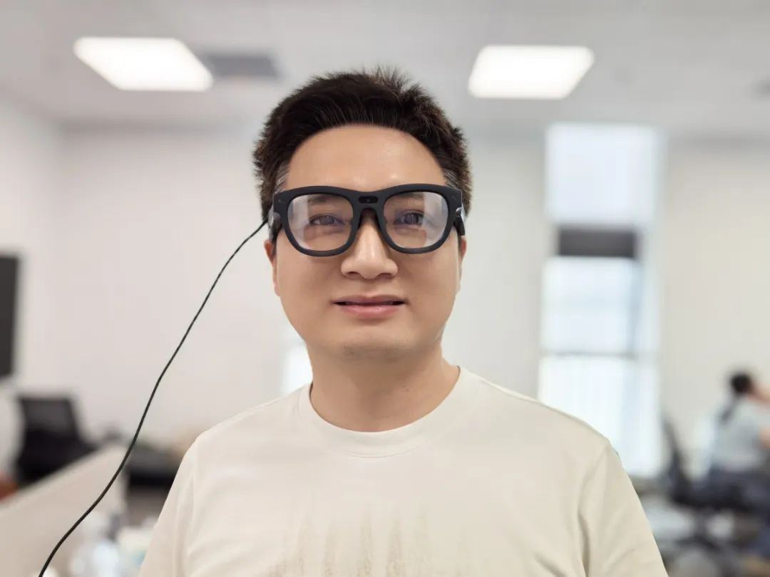 智能眼镜研发负责人戴着AR眼镜讲解芯片功能。受访者供图