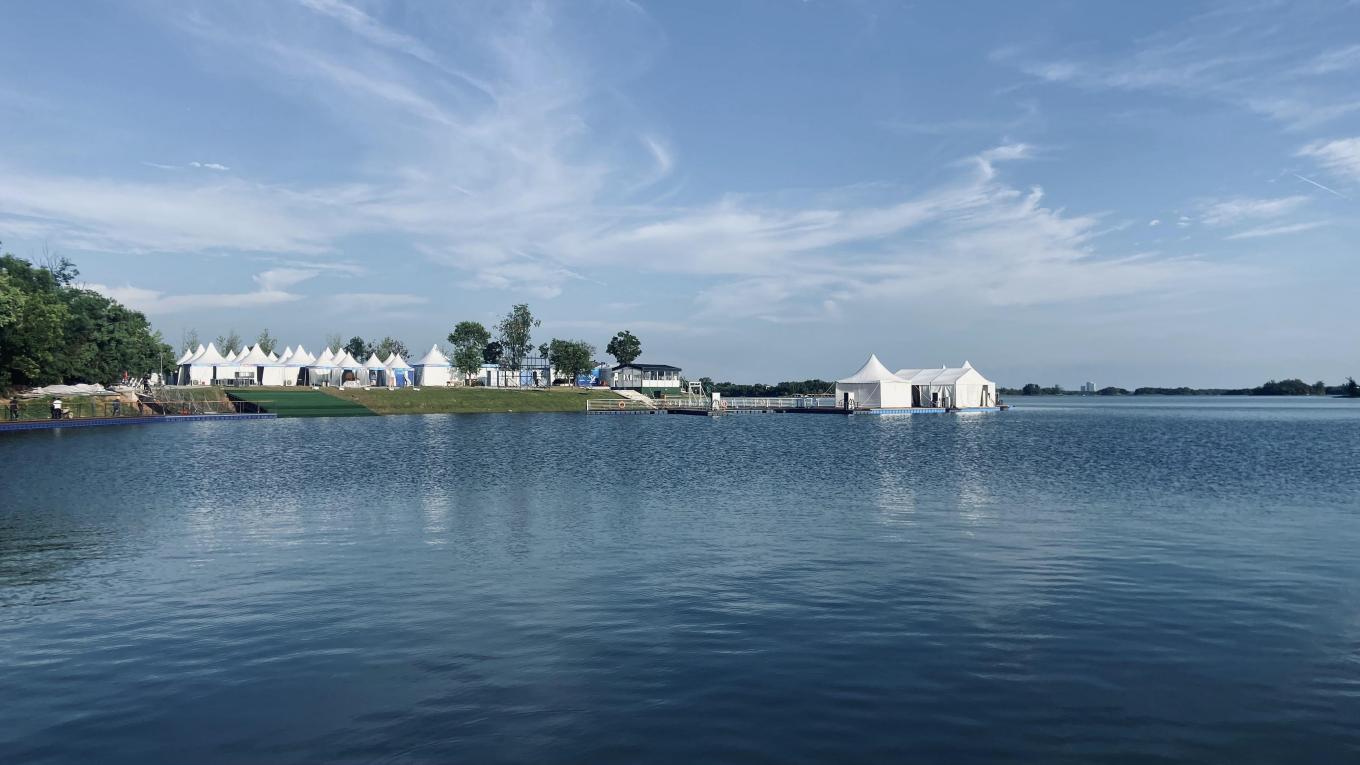 兴隆湖上,龙舟、皮划艇马拉松等水上项目运动员在竞技的同时,能感受碧水蓝天的畅快;在草地、沙滩等自然场地上进行的跑酷、铁人两项等项目,透射着 “生态宜居”与“体育赛事”的有机结合......来自全球的运动员与观众将发现:这些世界级竞技场,并非钢筋水泥浇筑的永久建筑,而是从湖光山色中“生长”出的临时舞台。