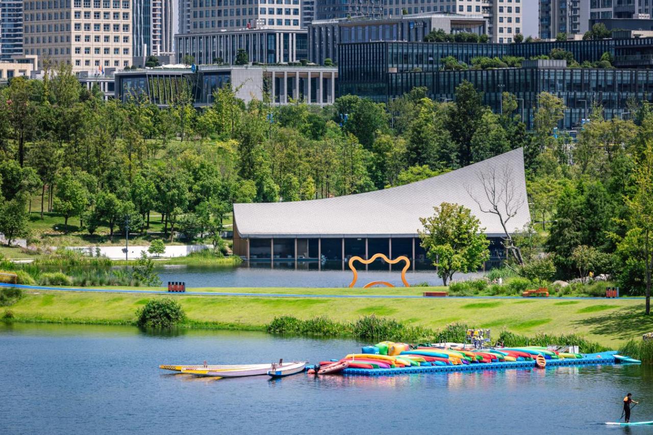 屋檐之下是家,屋檐之下是城。从设计角度出发,如何在“天府之檐”这个如城市会客厅般的开放空间里临水作画,让场馆与自然共生?
