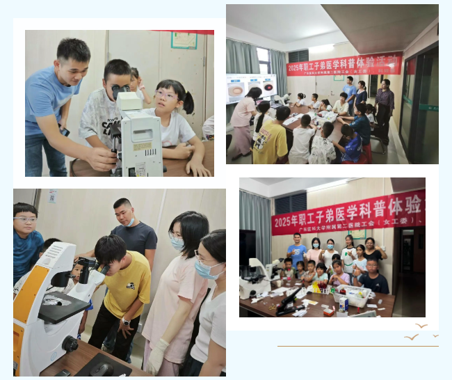 8月18—19日,“探索生命奥秘”医学科普体验日在医院科研部连开4场。40名职工子弟透过显微镜观察细胞,模拟医学检验流程,在趣味实验中种下科研梦想。