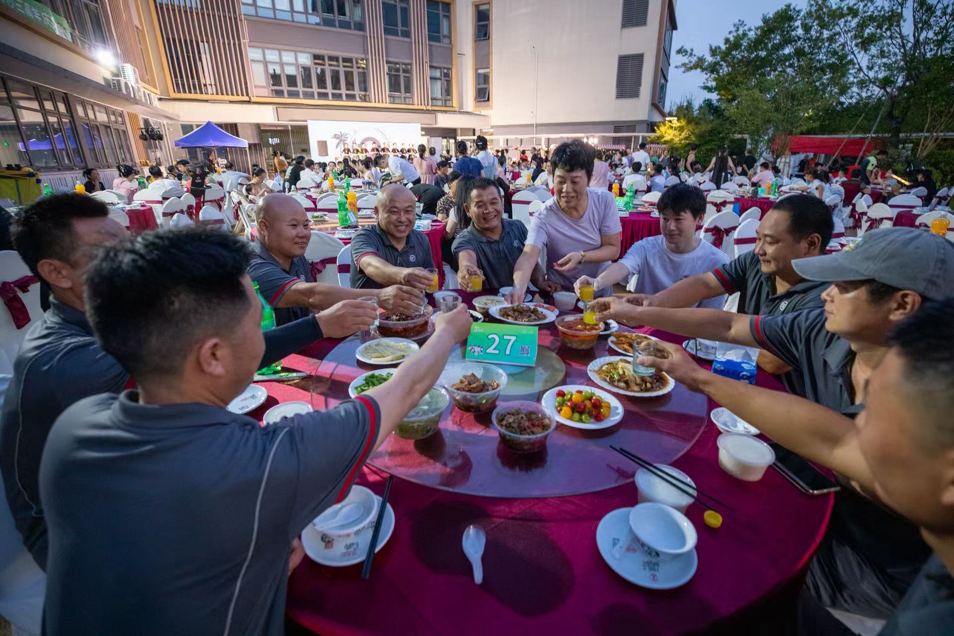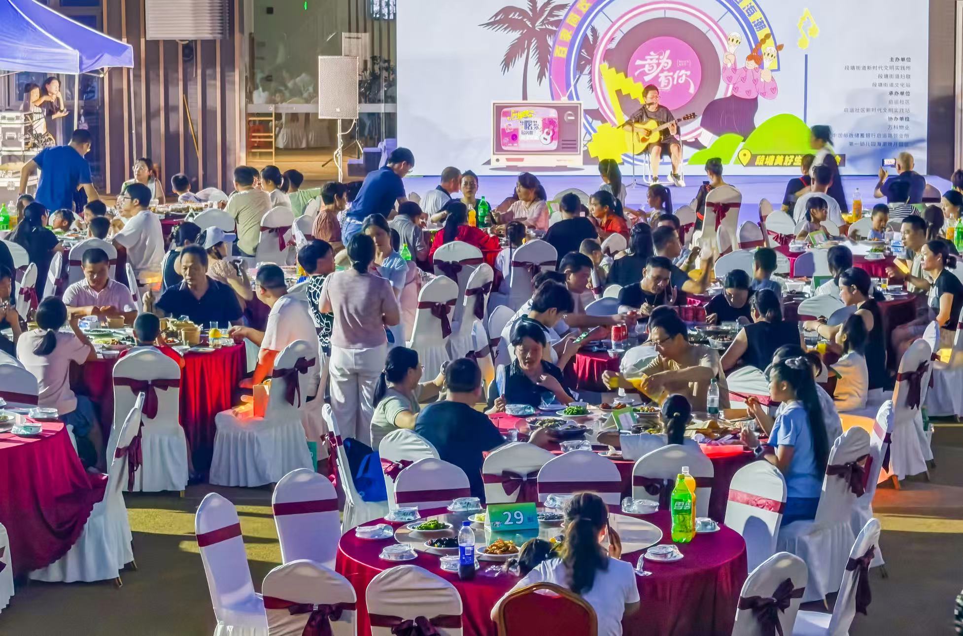 8月23日夜,晚风送爽,佳肴飘香,在这个凉风习习的美好周末,宁波市海曙区段塘街道启运社区海潮映月小区的业主们忙着从家中端出各式各样制作精美的菜品,乐呵呵地走向宁波市第一幼儿园海潮映月校区操场参加小区举办的社区文明百家宴暨“音为有你·美好生活节”活动。本次百家宴活动由社区和海潮映月小区万科物业共同主办,得到了宁波外事学院、宁波市第一幼儿园海潮映月校区、社区文艺团队以及社区共建单位的大力支持。