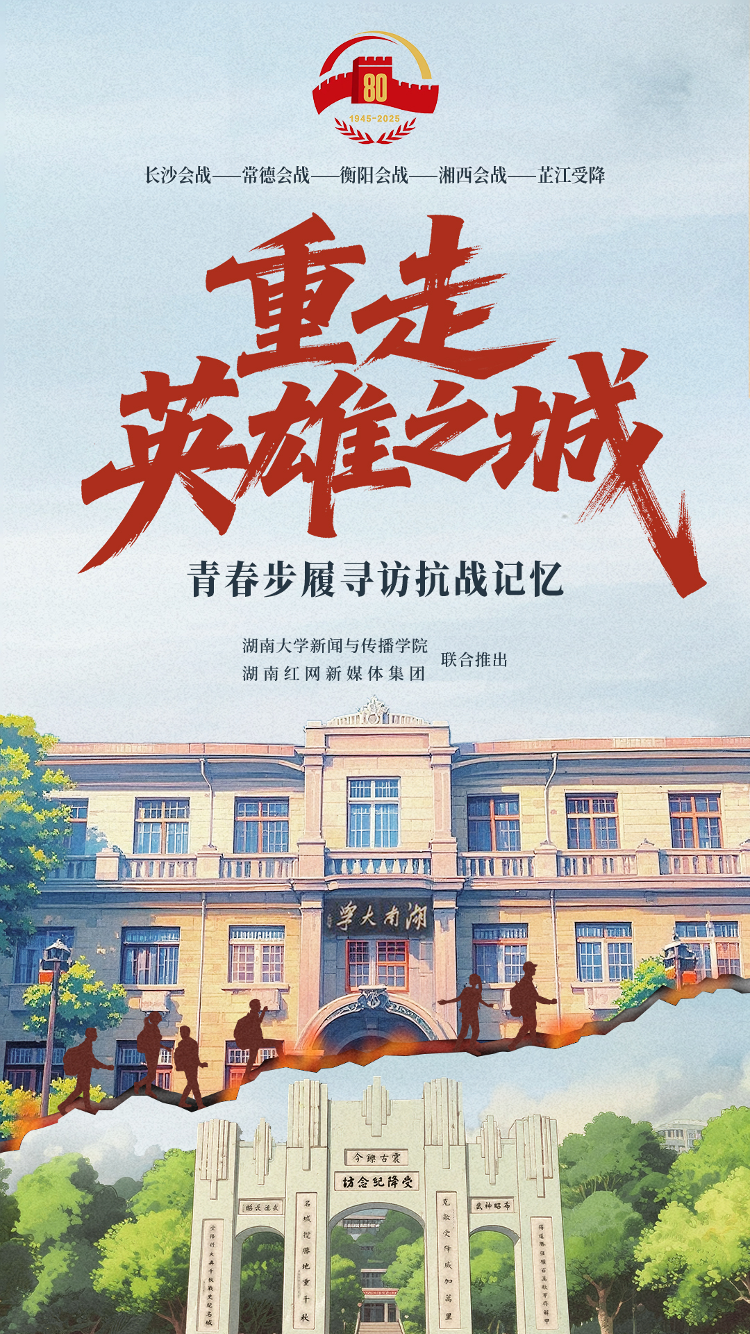 红网时刻新闻8月25日讯(记者 王义正 任晔)2025年是中国人民抗日战争暨世界反法西斯战争胜利80周年,湖南大学新闻与传播学院携手湖南红网新媒体集团联合策划推出“重走英雄之城——青春步履寻访抗战记忆”大型全媒体报道,19名湖大学子于8月暑期踏上湖南抗战热土,以青春视角重走长沙、衡阳、常德、怀化、邵阳(洞口)五大历史现场,用年轻一代的镜头与笔触对话民族记忆。