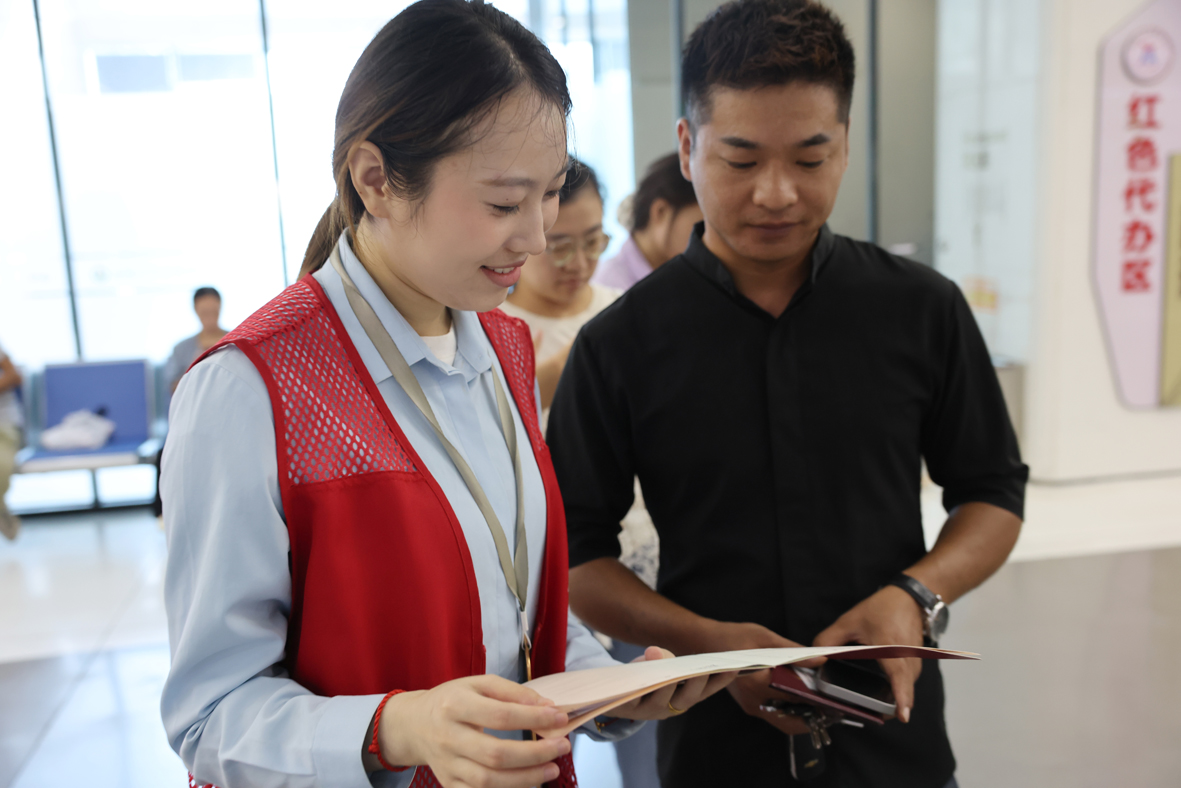 “小永帮办”志愿者为办事群众答疑解惑。魏文慧 摄
