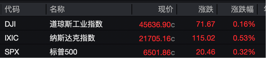 当地时间8月28日,美股市场高开高走,三大指数集体收涨,纳斯达克指数上涨0.53%,标普500指数上涨0.32%,道琼斯指数上涨0.16%。其中,道指和标普500指数纷纷创下收盘新高,纳指也一度逼近最高纪录。