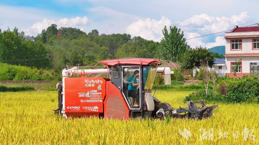 湖北日报客户端讯(通讯员李健、曾静、余明明)8月28日,在黄泥大米基地,联合收割机在稻田里来回穿梭,伴随着阵阵轰鸣声,宝丰镇600余亩荃优丝苗水稻(黄泥大米稻)正式开镰收割。