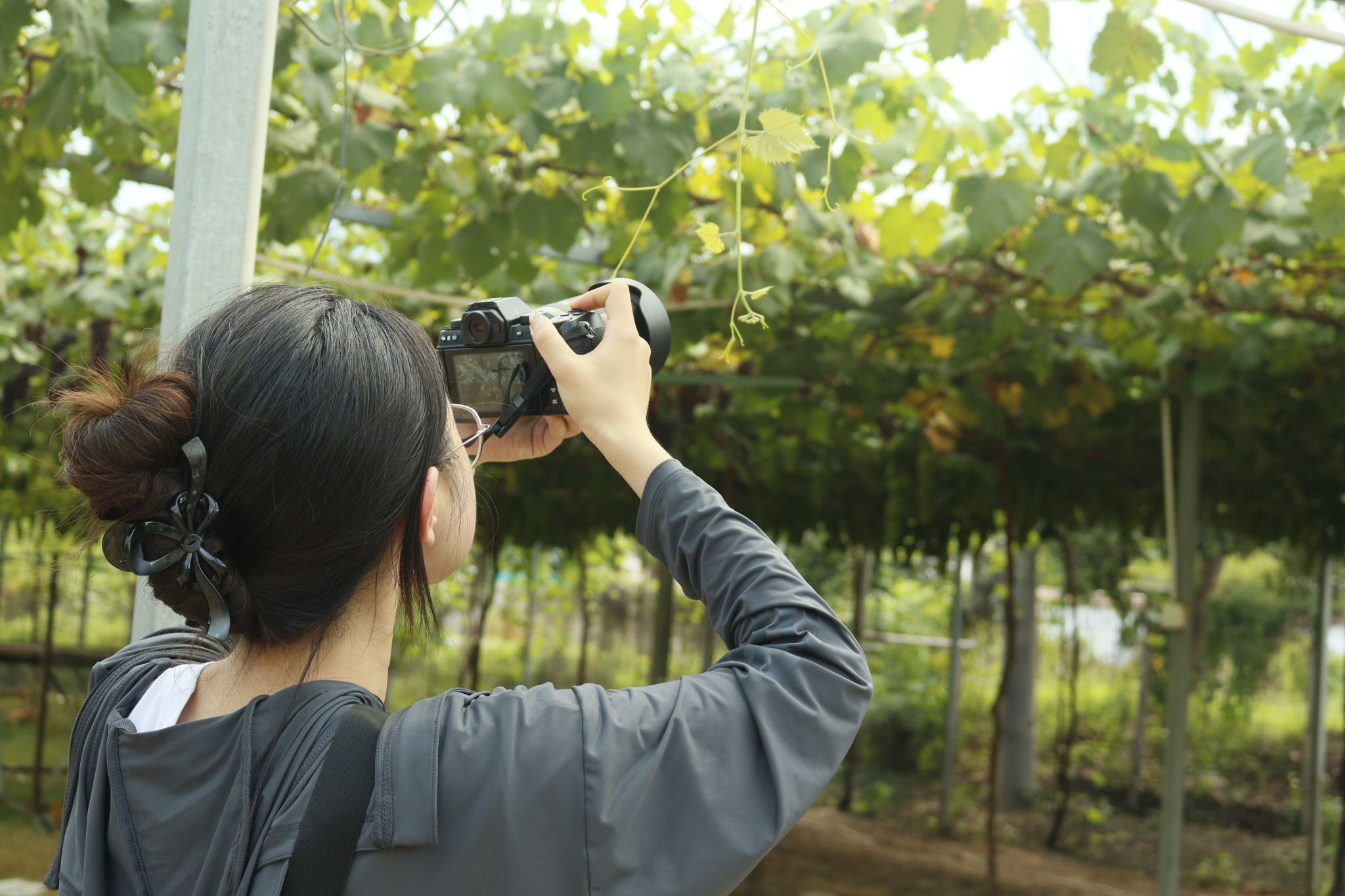 近日,在安徽省潜山市的田间地头,17名手持相机、操纵无人机的大学生成了乡亲们眼中的“新农人”。他们来自武昌理工学院影视传媒学院“田野新青年—筑梦潜行”志愿服务团队,把课堂真正“搬”进了乡村大地。这群年轻人以光影为锄,以镜头为桥,躬身于葡萄架下,仰头于灼灼桃林之间。他们的镜头拂过滴翠的藤蔓,对准饱满的果实,用独特的专业视角记录下乡村振兴的生动图景。