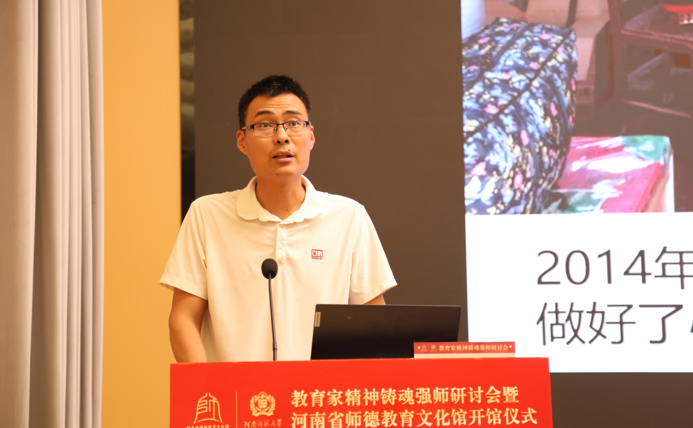在当天的“榜样说师德”环节中,国家级教学名师、河南师大教授渠桂荣,“河南最美教师”、封丘县潘店镇大辛庄小学教师任明杰讲述各自师德的动人故事。