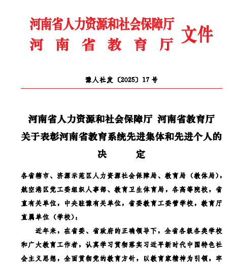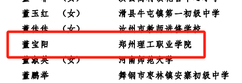 近日,河南省教育系统先进工作者及优秀教师评选结果揭晓,郑州理工职业学院喜获佳绩。该校教务处处长李庆标荣获“河南省教育系统先进工作者”荣誉称号,董宝阳老师荣获“河南省优秀教师”荣誉称号。