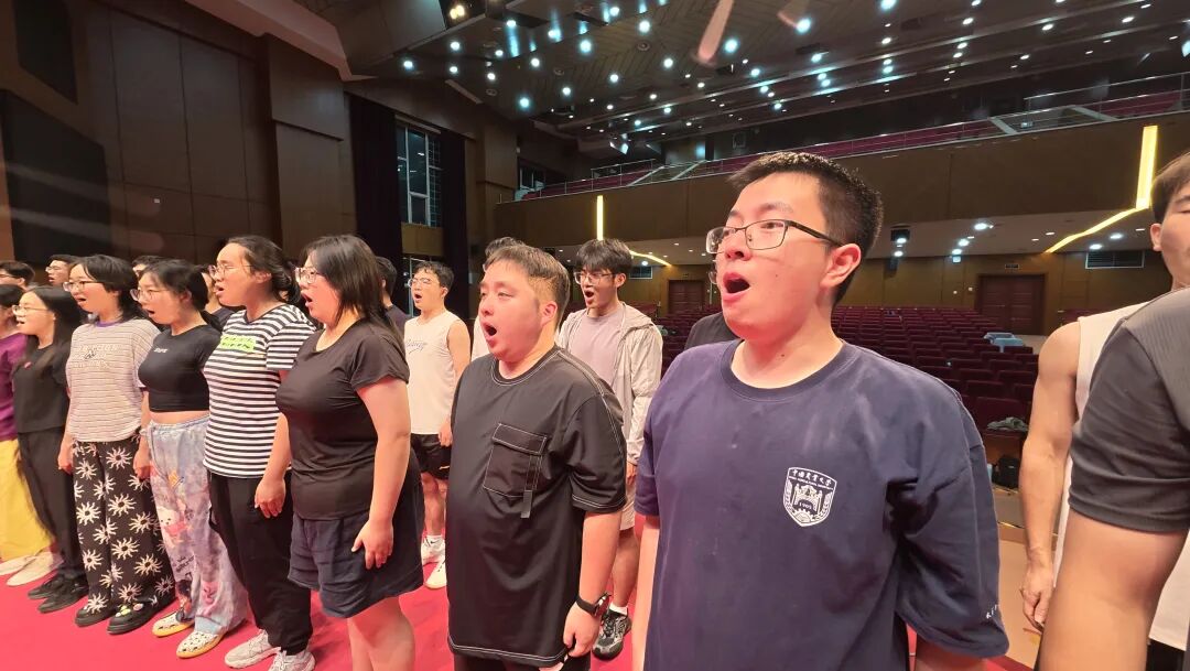 此次训练中,我有幸与同学们一起排演了音乐大思政课《迎风起跑》,从演唱、舞蹈,到情感传递,我们反复打磨。训练场地坚硬的地面,虽为腾空、跳翻等技巧动作增加难度,但我们始终以最高标准投入,只为将新时代青年的朝气与奋斗魄力,融入每一秒表演。当掌声响起,整个合唱团凝聚起的力量让我坚信:我们要用动人歌声与坚毅精神,向世界展现中国青年之姿!