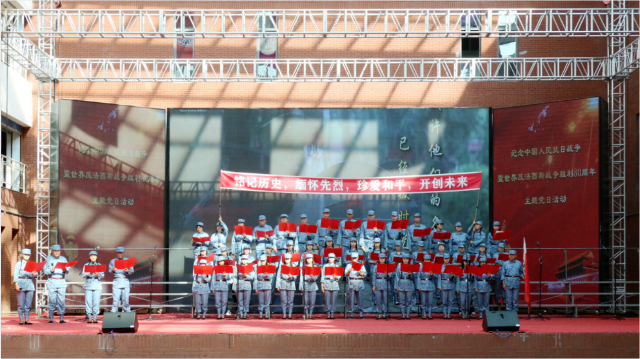 活动中,各单位精心编排的节目依次登场,师生们以深沉饱满的情感与铿锵有力的声音,深情讴歌中华民族不屈不挠的抗战精神。《沂蒙山》《丰碑与号角》《沁园春·雪》《梅岭三章》等红色诗歌作品,用赤诚之声诠释担当与信仰,向为国家和人民英勇献身的抗战先烈致以最深切的缅怀。《英雄赞歌》《祖国不会忘记》《我的祖国》《游击队之歌》《黄河大合唱》等一首首悠扬旋律,每一个音符都承载着峥嵘岁月的记忆,缓缓唱响对祖国最深的眷恋。
