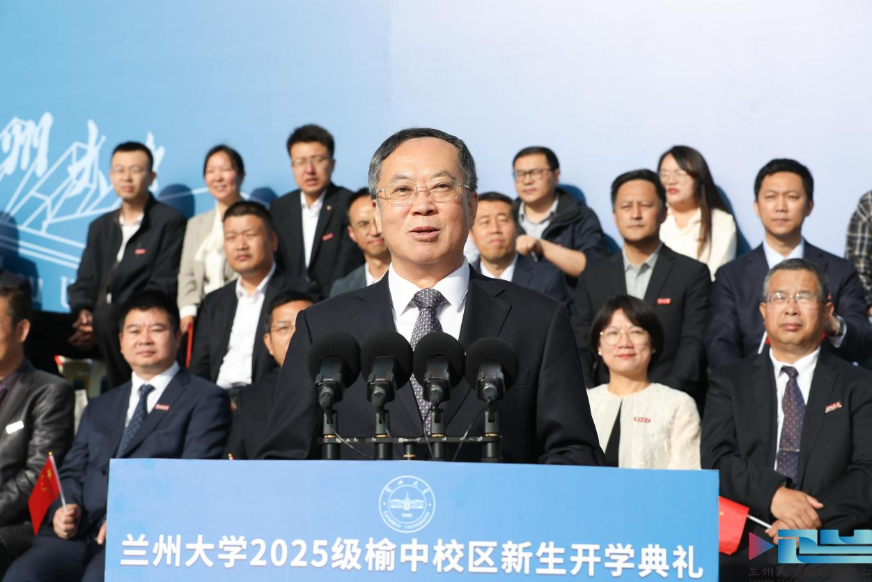 杨勇平作了题为《与家国同行中书写逐梦新篇》的致辞,代表学校向2025级新生表示热烈的欢迎和衷心的祝愿。他说,兰州大学自诞生以来,始终与民族共命运、与时代同步伐,116年来扎根陇原大地,兴学育人、励教兴邦。同学们是伴随着祖国从“富起来”到“强起来”成长起来的“强国一代”,从此刻已经开启自己在新时代新征程中铸就自立自强、不懈坚持、创新进取、挺膺担当的优良品质,与家国同频共振的奋进篇章。希望同学们要以不懈坚持积蓄发展动能,不断增强一往无前的行动力,按照自己的兴趣和专长,确定好自己努力方向,在实现一个个小目标中变得强大;始终保持永不懈怠的精气神,向下扎根、向上生长、努力前行。要以创新进取迎接时代挑战,充分利用好学校的创新资源,积极主动加入课题组、进入实验室、融入大团队,在跨学科的学习交流和思想碰撞中追踪世界学术前沿,开拓学术视野和知识边界;主动拥抱教育教学方式、知识供给模式和科研创新范式变革,不断尝试将所学知识转化为解决实际问题的举措,坚持把论文写在祖国大地上。要以挺膺担当投身复兴伟业,把西部作为服务国家的前沿阵地,主动融入乡村振兴、产业升级、科技创新的一线,积极参与西部大开发形成新格局、黄河流域生态保护和高质量发展、“一带一路”建设等国家重大战略行动,用青春智慧和务实行动努力书写“强国有我”的时代新篇。
