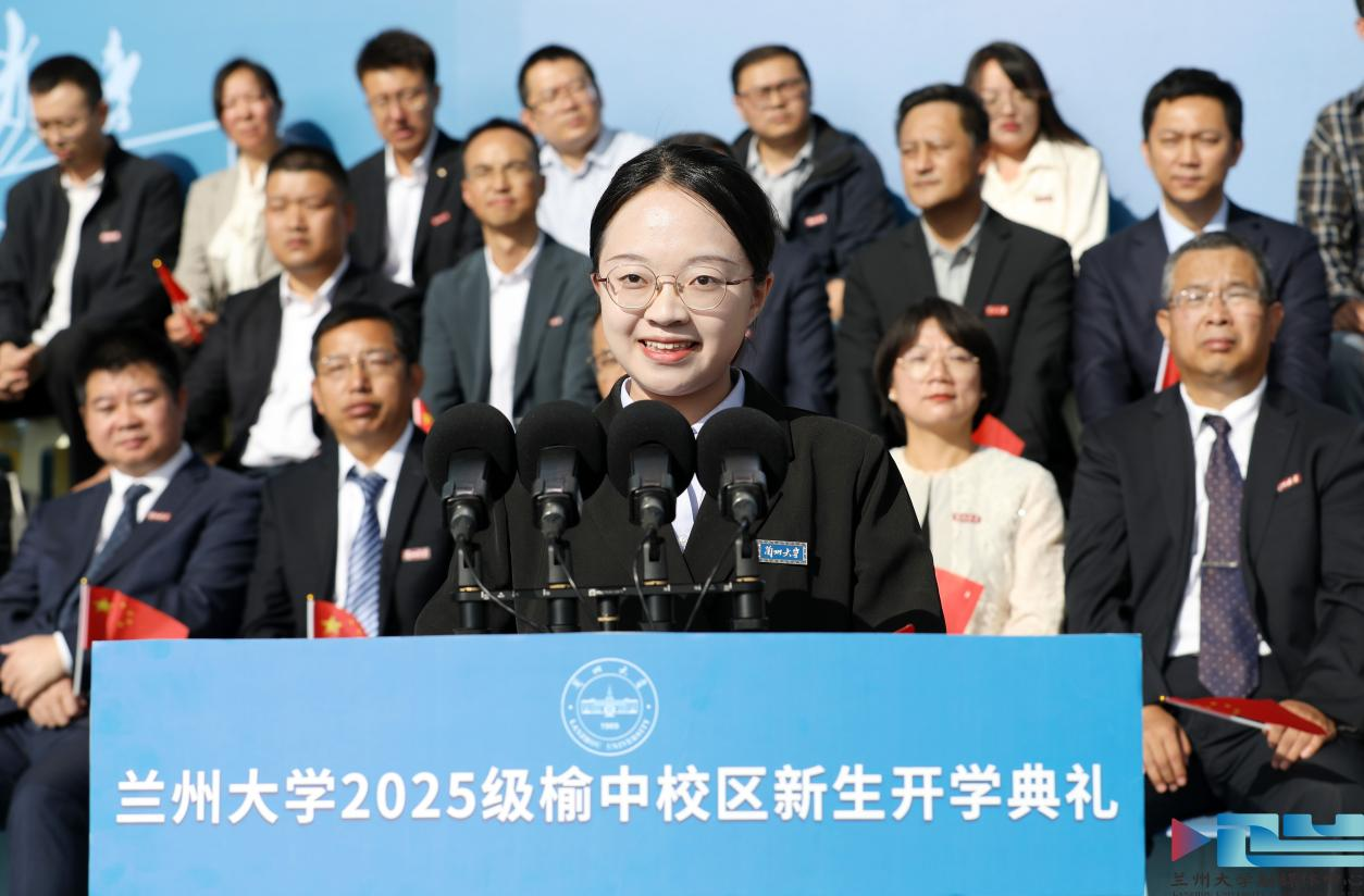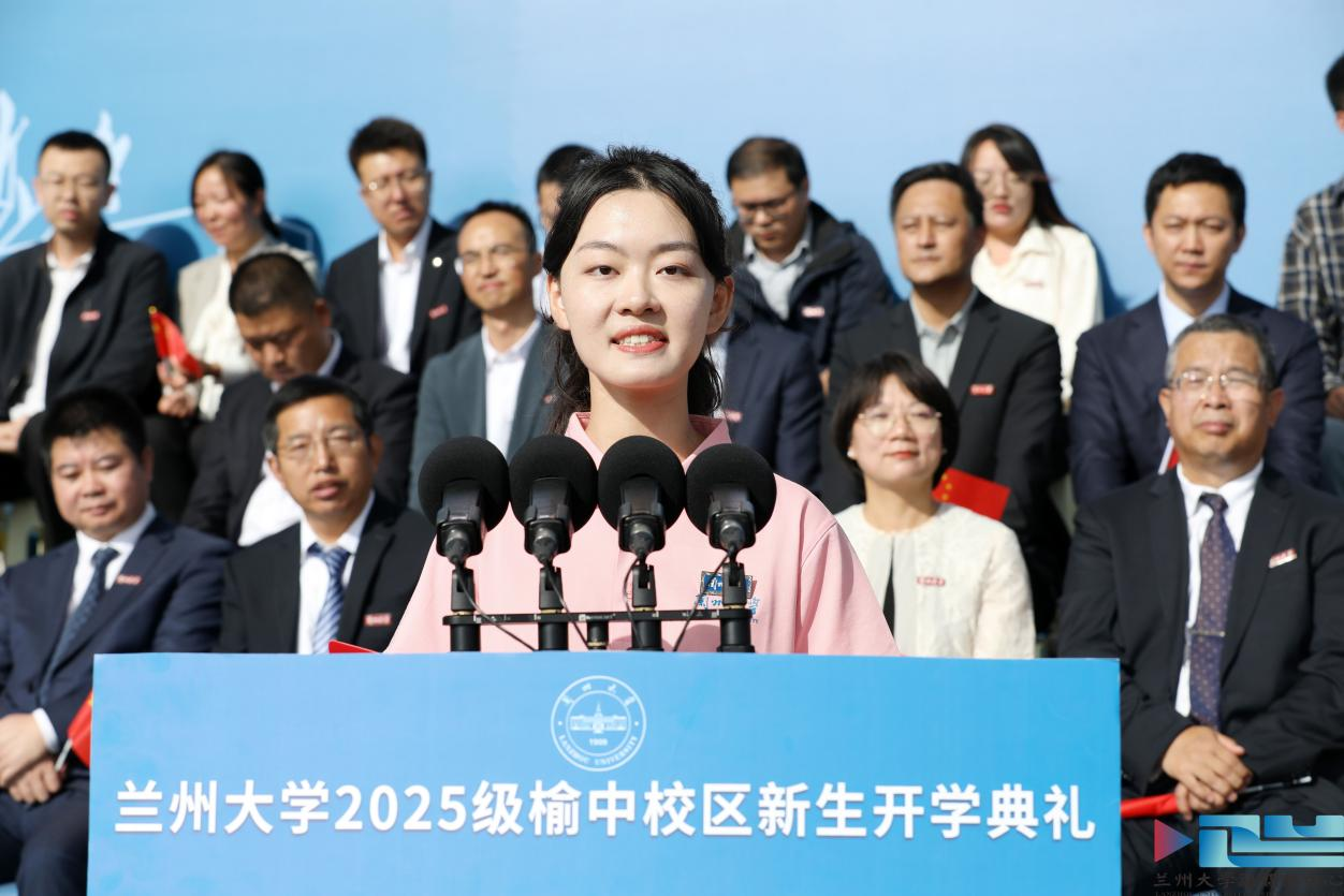 本科生新生代表、草地农业科技学院2025级本科新生梁佳依表达了对大学生活的憧憬,将新生比作种子,期待在兰大沃土中成长,同时号召同学们一起做扎根大地的草种、自强不息的牧草、奉献付出的草原,把个人理想融入国家发展,让青春在祖国需要处绽放。