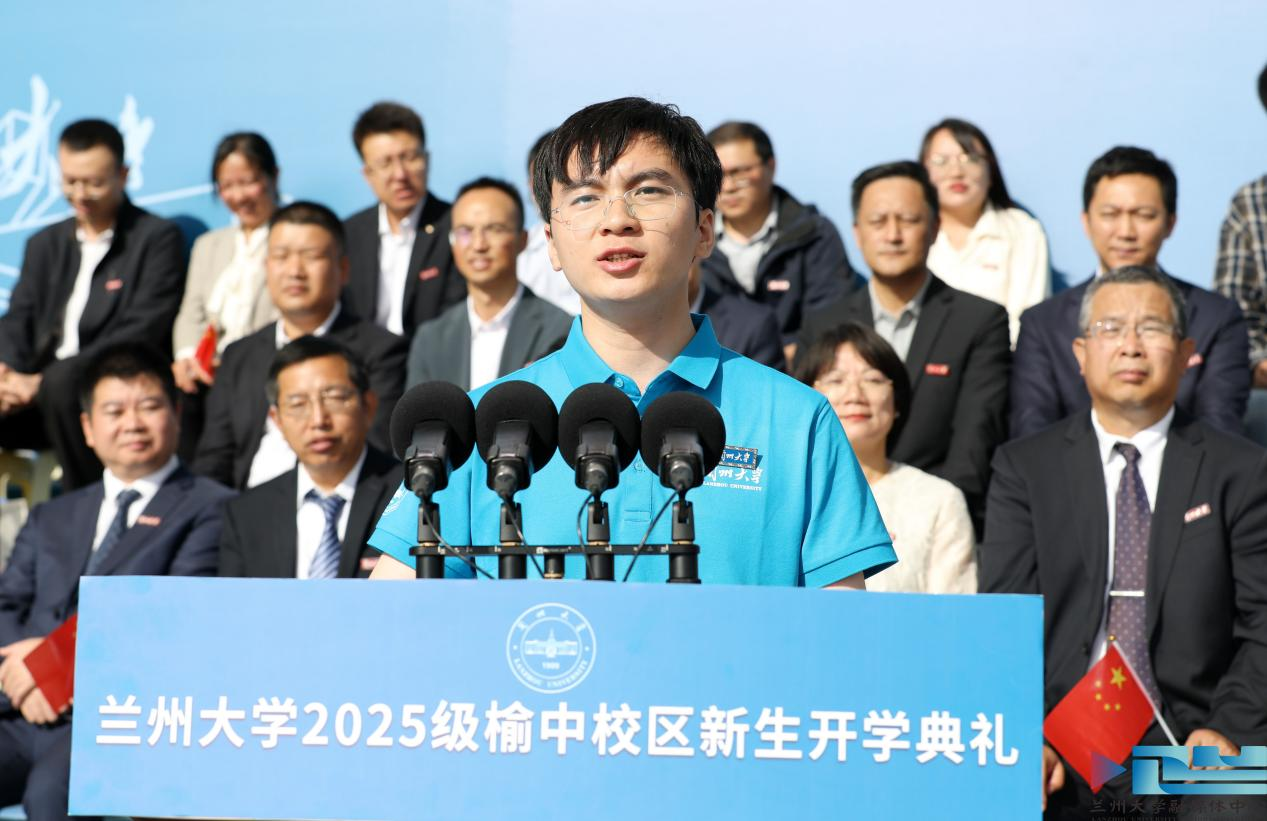 研究生新生代表、土木工程与力学学院2025级直博生邓万迟回顾了自己在兰大四年本科时光及继续选择兰大开启直博生涯的经历,他从探索未知、追求卓越、报效家国三个维度,号召同学们传承兰大人“坚守在西部、奋斗为国家”的追求,以实干创新在专业领域深耕,为中国式现代化贡献青春力量。