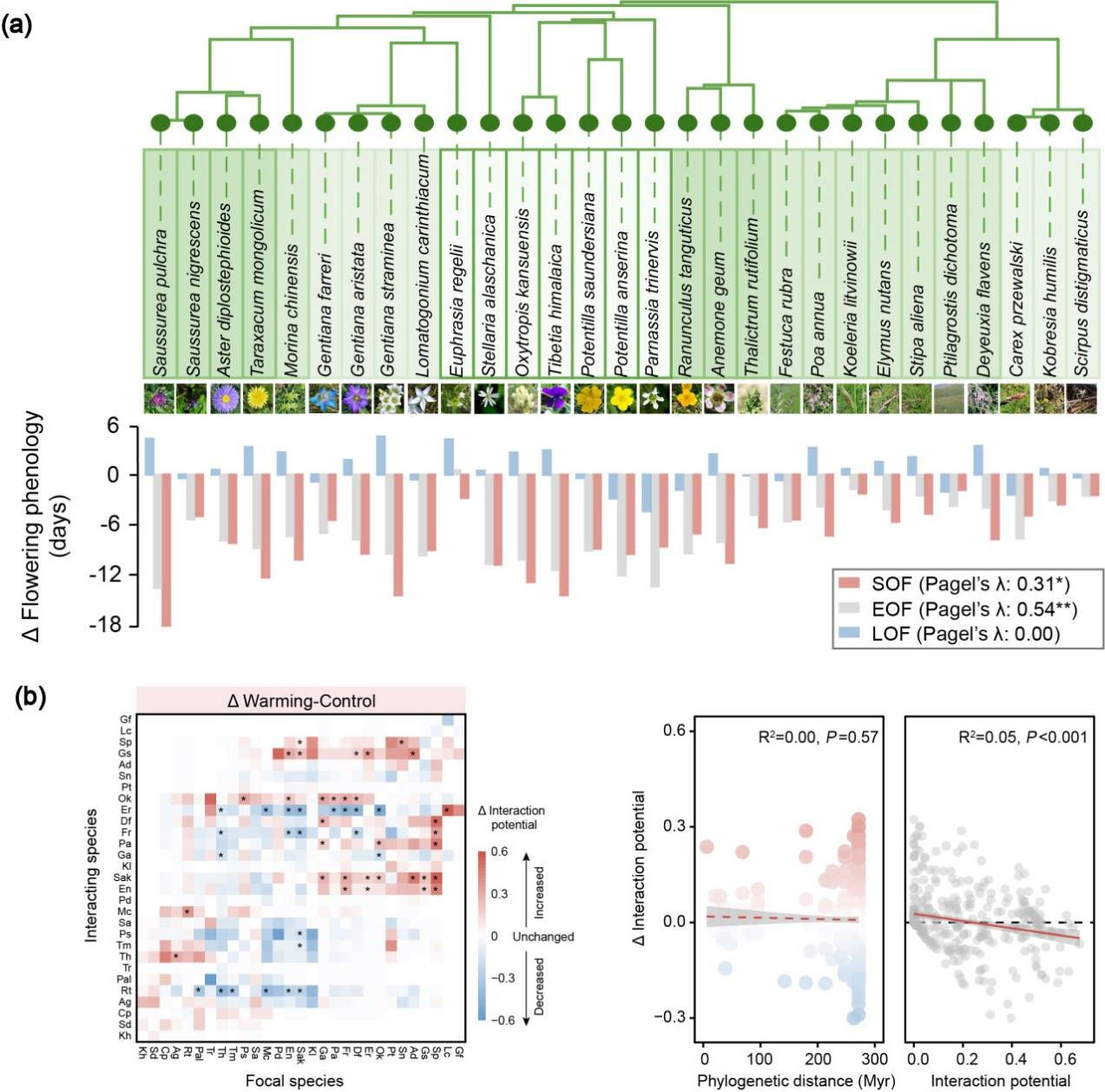 系统发育关系对增温下开花物候响应及物种两两交互潜势响应的调控作用