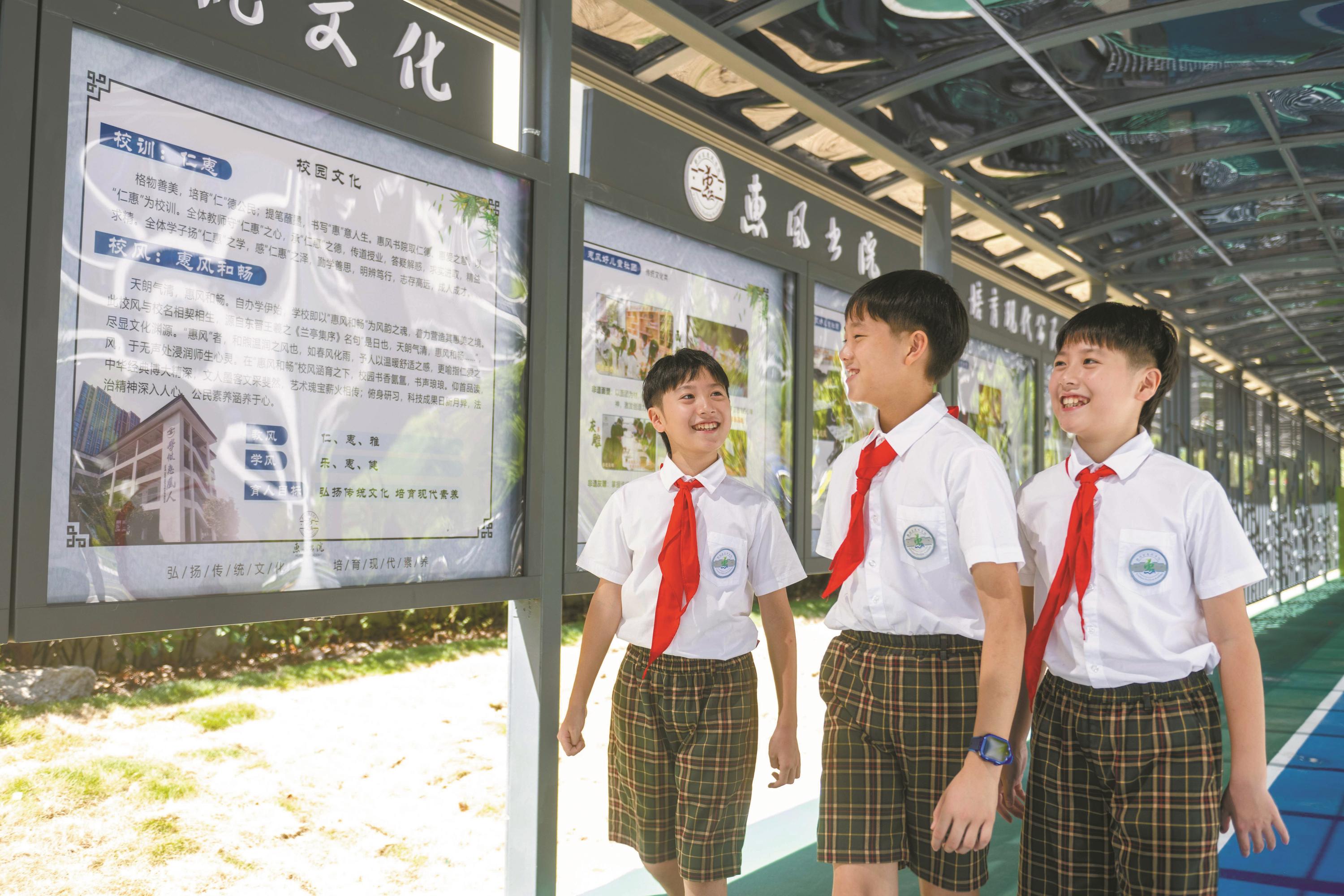 金秋九月,宁波市鄞州区惠风书院前的“最美上学路”焕发新颜。彩色的地面图案如同跳动的音符,引导着孩子们欢快地走向校园。在“一平米博物馆”前,一群学生正聚精会神地观看三星堆文化特展,不时发出惊叹之声;退红绿化改造成的“甬小园”内,孩子们观察着绣球花、满天星、桂花等本地植物,并通过彩色科普牌了解种植小知识。这条融合了文化展示、自然教育等多重功能的上学路,成为新学期送给市民最暖心的礼物,也让往日匆忙的上下学路途,变成了充满乐趣与收获的成长体验。