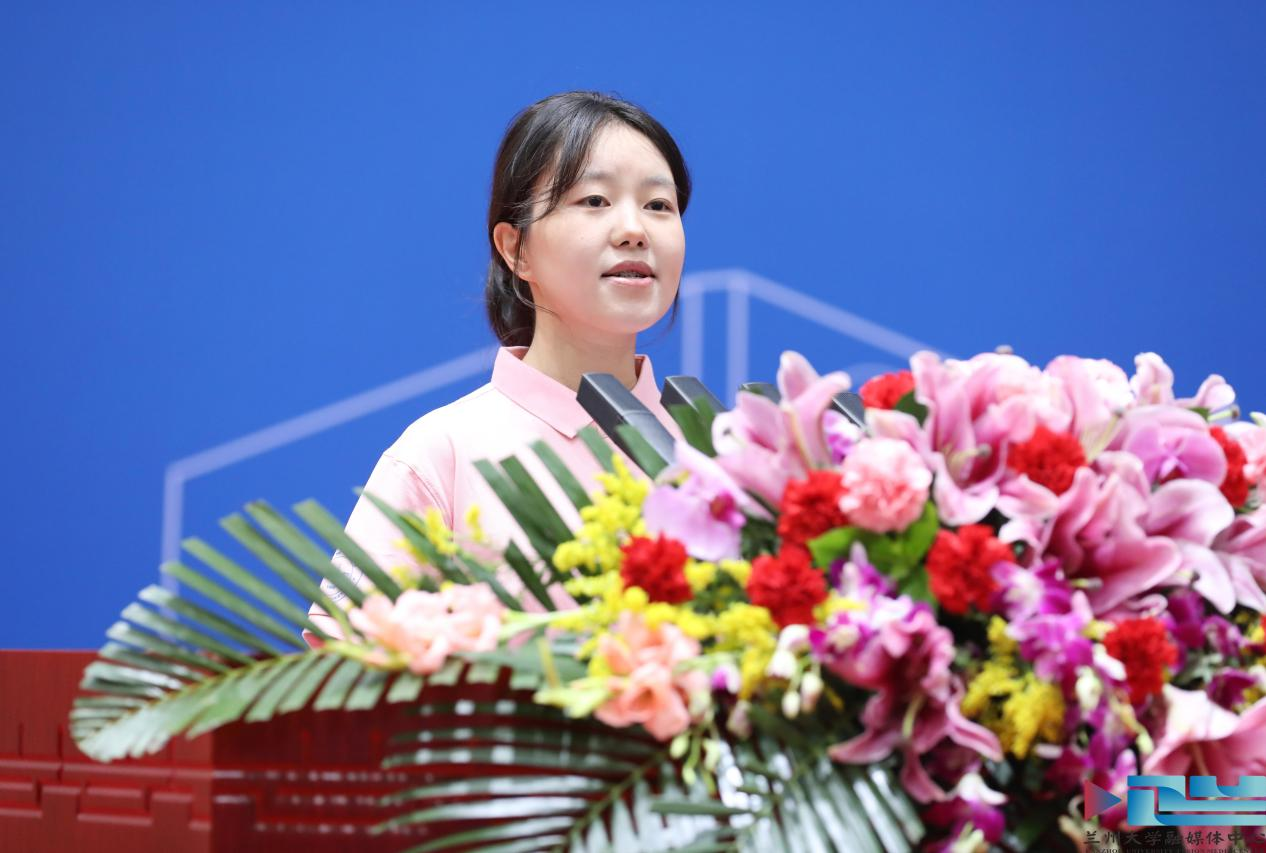 新生代表、地质科学与矿产资源学院硕士研究生朱晓航以“传承兰大精神,追逐时代之光”为题,结合自己大学四年在“地质”科学中的实践探索,号召同学们不盲从潮流,不畏惧挑战,以“坐冷板凳”的定力与“啃硬骨头”的勇气,不断探索、不断钻研、不断突破,让学术成果服务国家发展,让青春力量融入民族复兴。