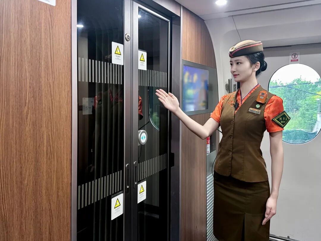 车门是保障旅途安全的重要屏障。车门关闭前,系统会发出提示音,旅客需提前在指定车门区域等候,有序上下车。当车门发出提示音时,千万不要抢上抢下,以防被车门夹伤。
