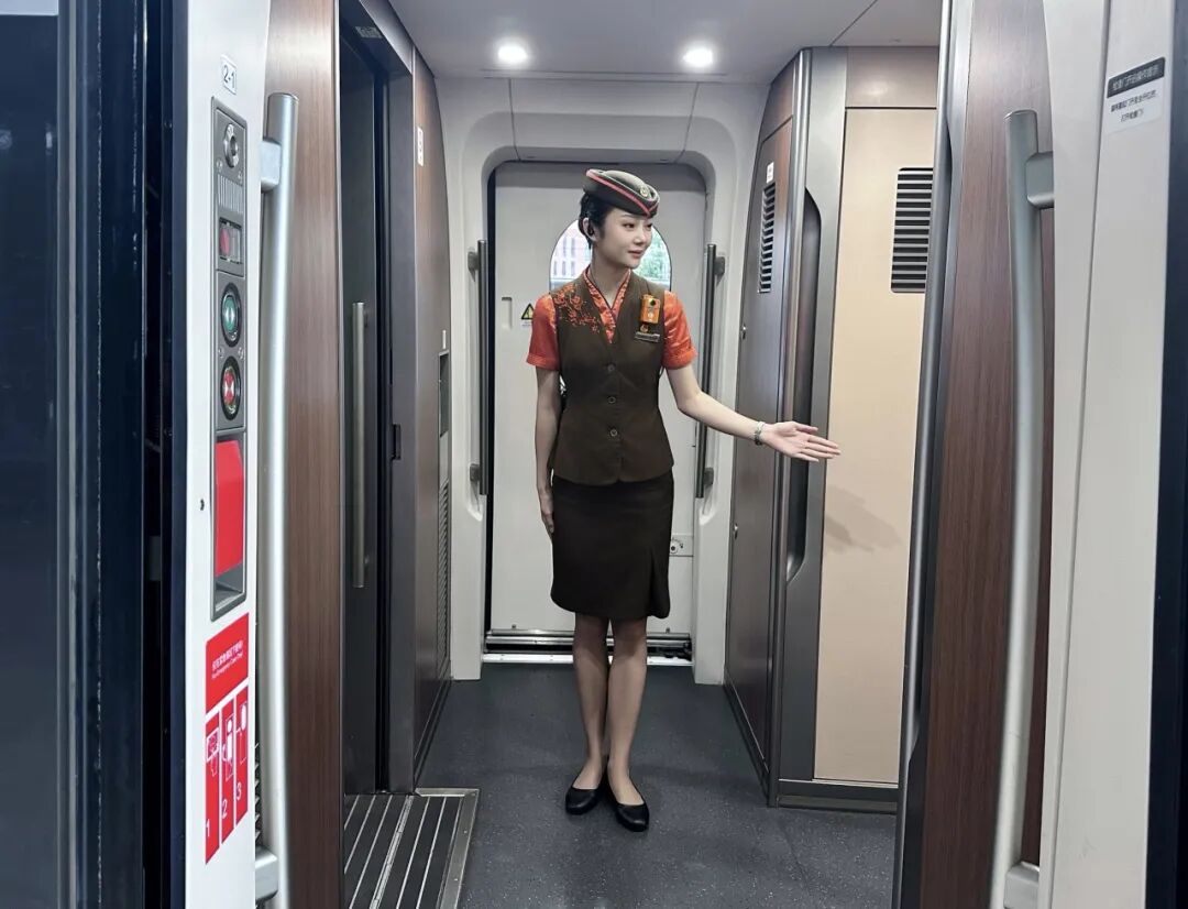 乘务员室位于列车中部,是列车乘务组的“办公室”,乘务员会在里面通过广播发布提示,比如提醒旅客上下车,以及为有需要的旅客提供帮助。