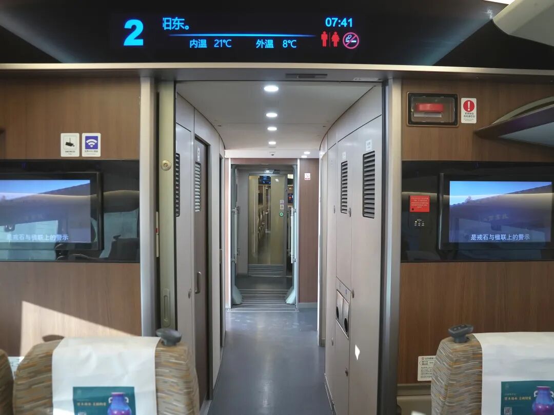 高铁停站时间较短,为了方便旅客在车厢间通行、上下车及寻找座位,二等座车厢连接门一般处于常开状态。