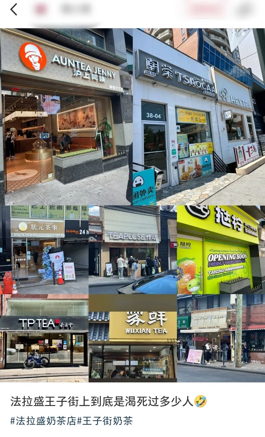 红餐网观察到,初期阶段,新茶饮品牌往往贴着华人区开店,借此建立基本盘。譬如,华人扎堆的纽约法拉盛王子街就被网友戏称为“糖尿病一条街”,沪上阿姨、喜茶、茉莉奶白等品牌均在此起步开店,将一条街变成了一条热闹的茶饮街。在这类区域,新茶饮品牌“本来就有一定知名度”,能快速形成稳定的消费群体,从而降低市场进入风险。