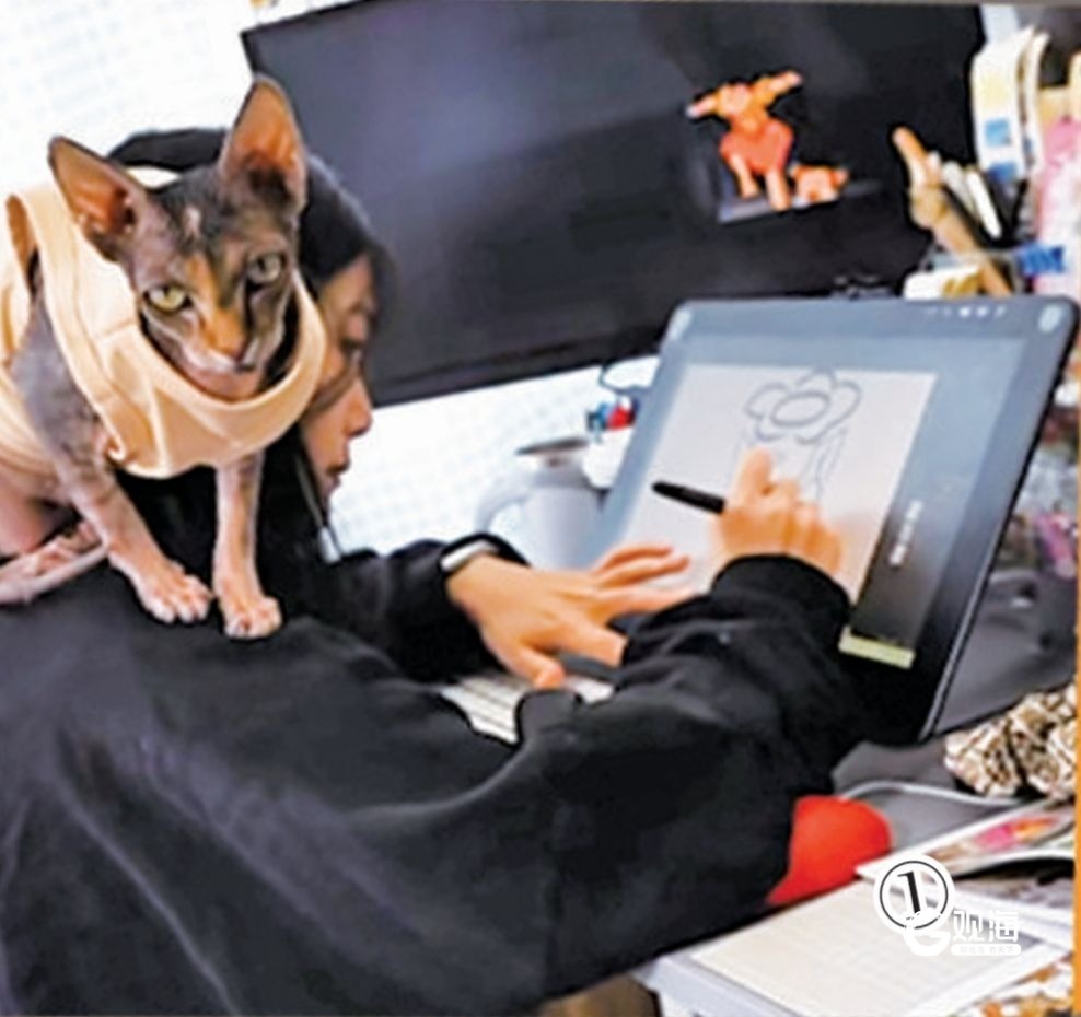 嘻有猫工作室设计师十二月正在创作。