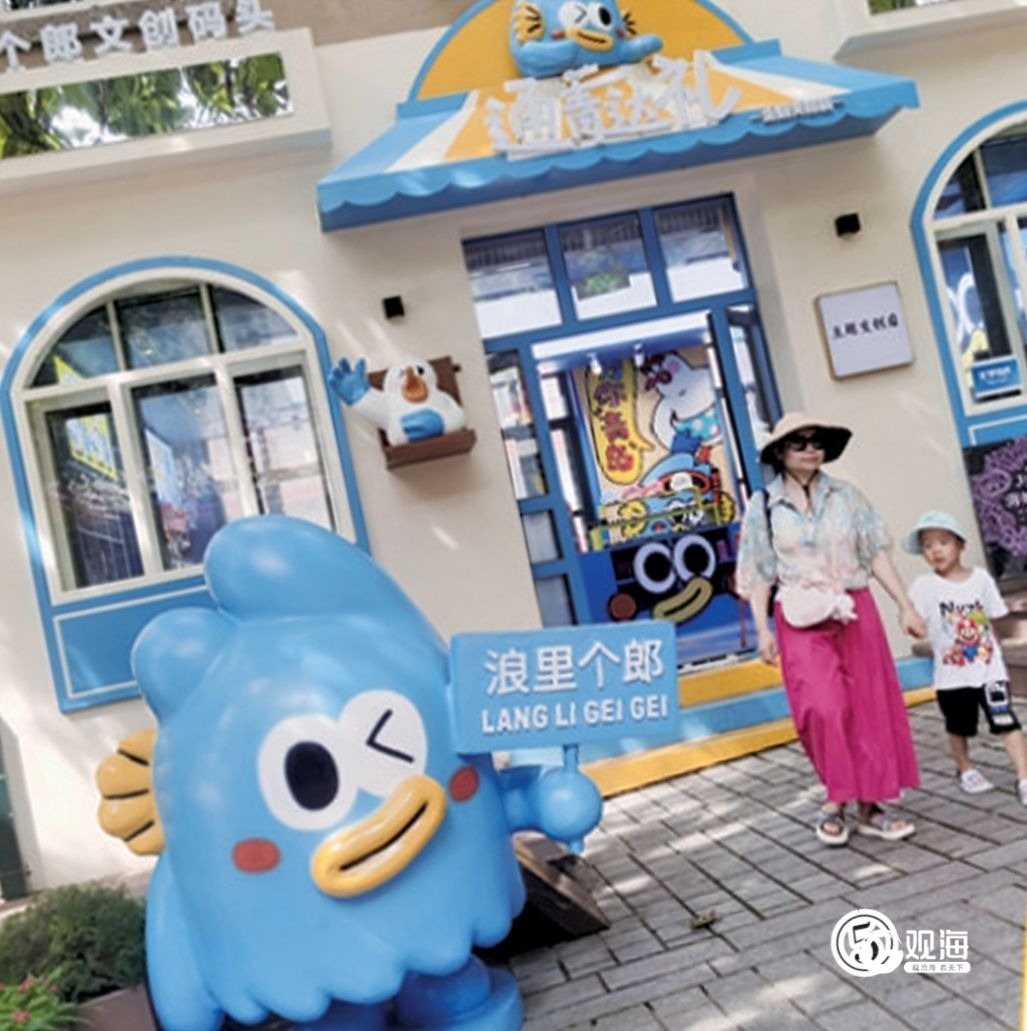 今年5月,位于海泊路63号广兴里的“通青达礼”主题文创店正式开业。这是阿鸥岛主与浪里个郎的联名主题空间,凭借原创IP“阿鸥岛主”和“浪里个郎”出圈。其中,“阿鸥岛主”的灵感源于青岛冬季的海鸥迁徙奇观,“浪里个郎”则是基于浪花打造的另一款IP。