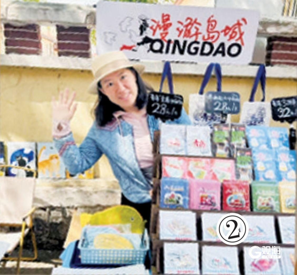 许心是一名文静的东北姑娘,2022年来青岛后,从事平面设计工作。从小喜爱画画的她,醉心于青岛的美景,时不时地“小试牛刀”,用画笔创作青岛元素文创。“最初只是尝试着设计了几款明信片,没想到大受欢迎。周末摆摊一天,竟卖出1000多块钱的产品。”这意外之喜,加上多名顾客的好评,让许心坚定了做文创的想法。