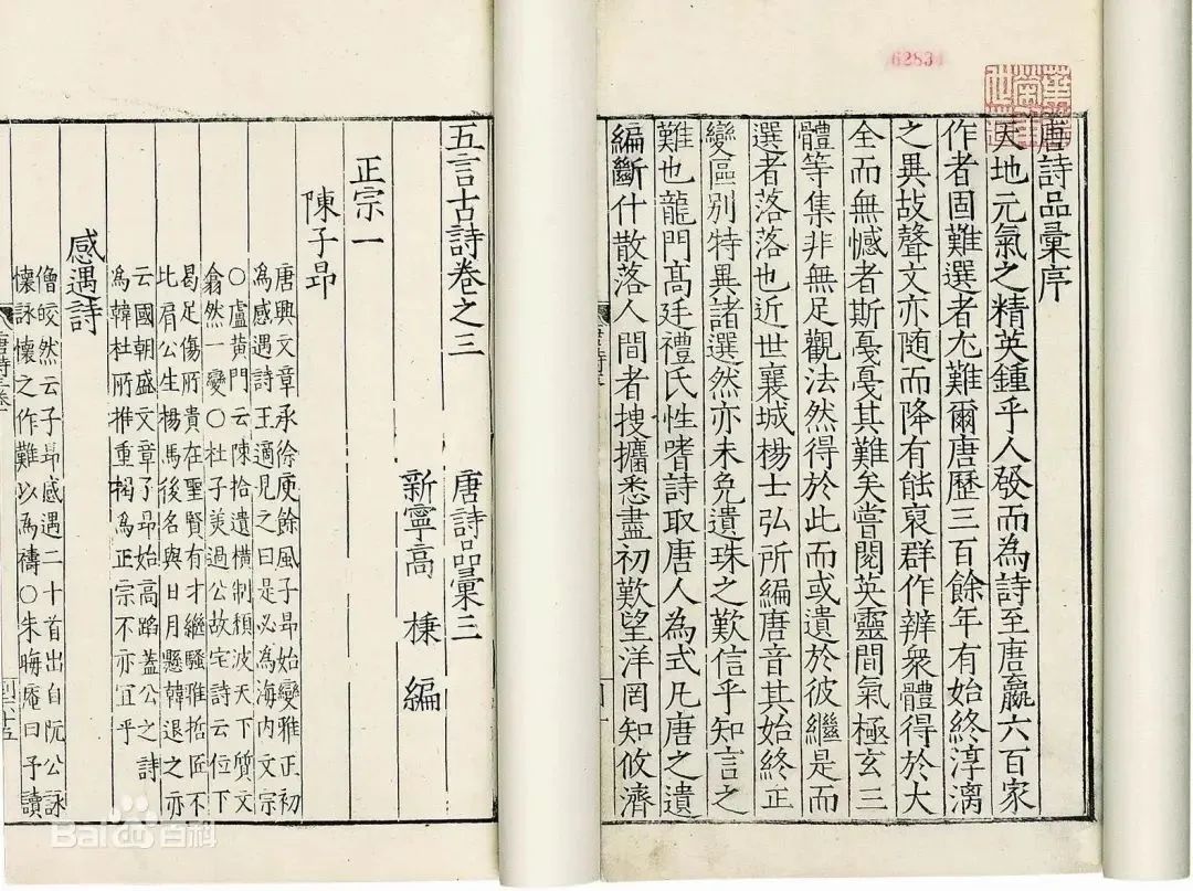 然而,高棅最具开创性和深远影响的贡献在诗学领域。他编选了《唐诗品汇》90卷及《拾遗》10卷、《唐诗正声》22卷。最了不起的是,他首次系统地提出并实践了将唐诗划分为“初、盛、中、晚”四个时期的概念,并依诗体分类编选。这个开创性的分类框架,深刻影响了后世对唐诗的理解和研究,直接启发了明代前后七子“文必秦汉,诗必盛唐”的复古主张,在唐诗学史上具有里程碑意义。