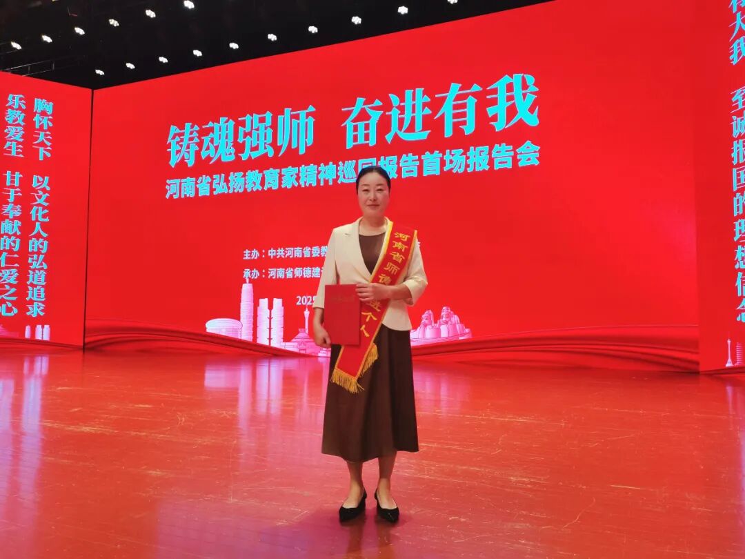 9月9日,河南省庆祝第41个教师节表彰大会在省人民会堂隆重举行。河南省经济管理学校教师王明丽凭借为人师表的楷模风范和教书育人的突出实绩,荣获“河南省师德先进个人”称号,并作为受表彰代表接受表彰。同时,王明丽老师也被赋予了新身份——作为2025年河南省弘扬教育家精神主题巡回报告团成员之一,参加全省师德巡回报告会宣讲。