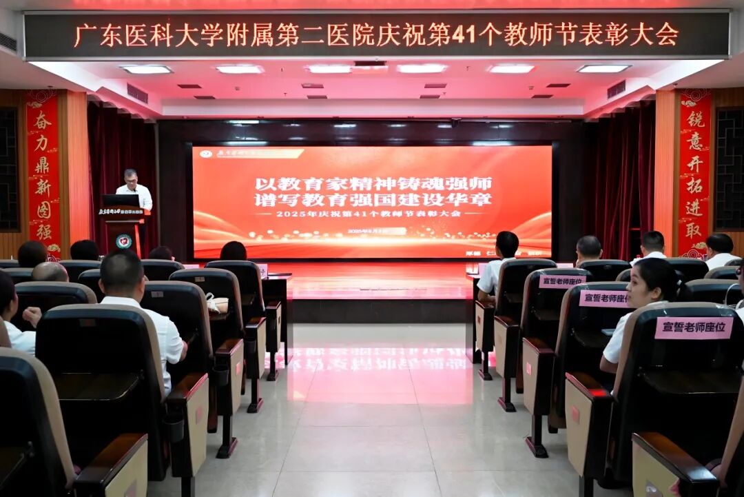 9月8日,我院召开庆祝第41个教师节表彰大会,集中表彰教学先进集体与个人。广东医科大学妇儿医学院党委书记林海文,党委副书记茅晓颖,医院党委书记陈婷,党委副书记、院长张良清等出席会议,受表彰人员、师生代表共200余人参会。