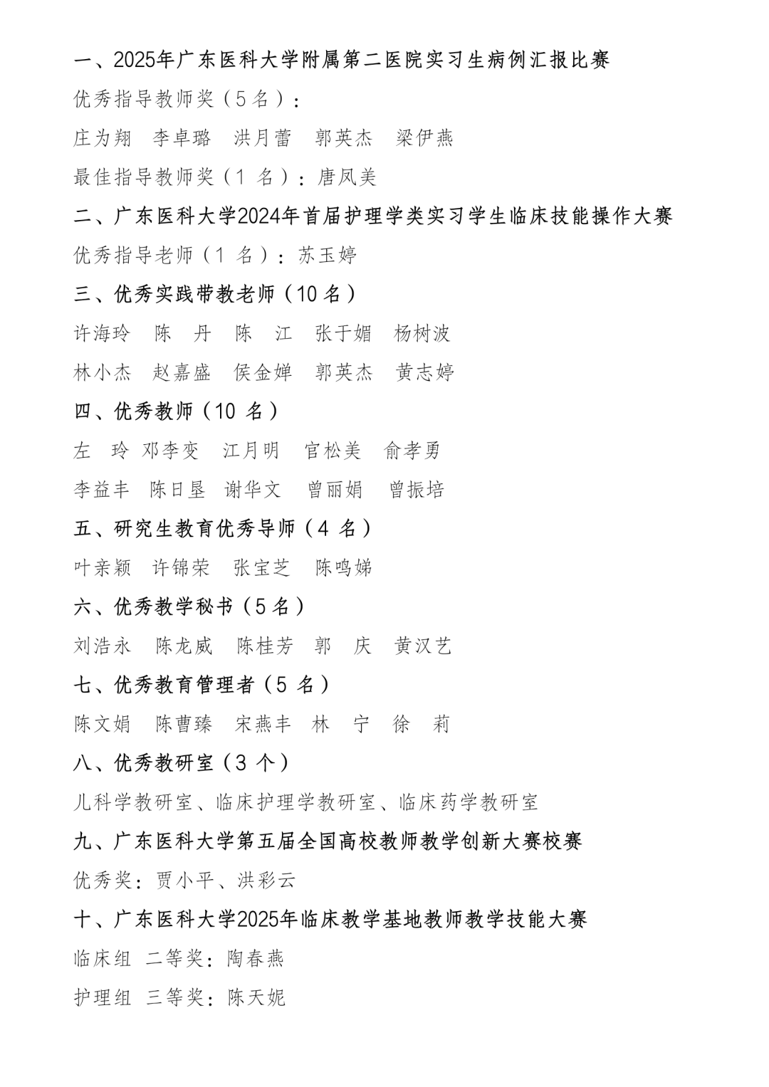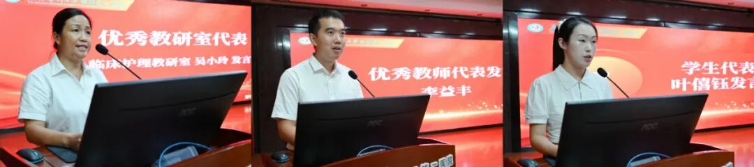 颁奖环节表彰了2025年度在教学工作中表现突出的集体与个人,涵盖“优秀指导教师”“优秀教师”“优秀教研室”“优秀教育管理者”等多个奖项,充分体现了医院对教育教学工作的高度重视与肯定。“优秀教师”李益丰、“优秀教研室”负责人吴小玲及学生叶僖钰还分别作了代表发言。