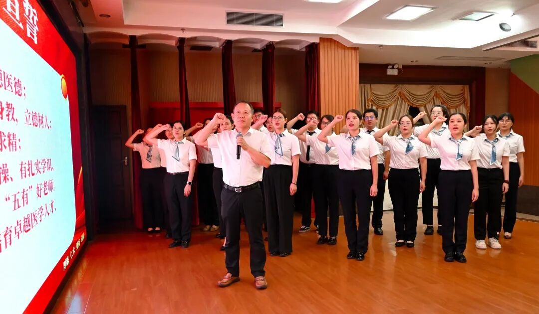 会上,张良清带领新进教师进行庄严宣誓,铿锵誓言彰显了教师们投身医学教育的初心与使命。
