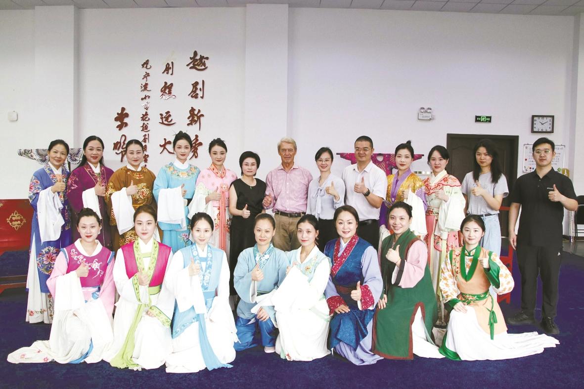 昨天,宁波市荣誉市民、法国鲁昂宁波友好委员会主席樊尚·勒马尚走进市小百花越剧团排练厅,先睹为快。他表示:“我知道越剧这门艺术,很惊讶的是,剧中角色无论男女,都是由女性演员饰演的。”