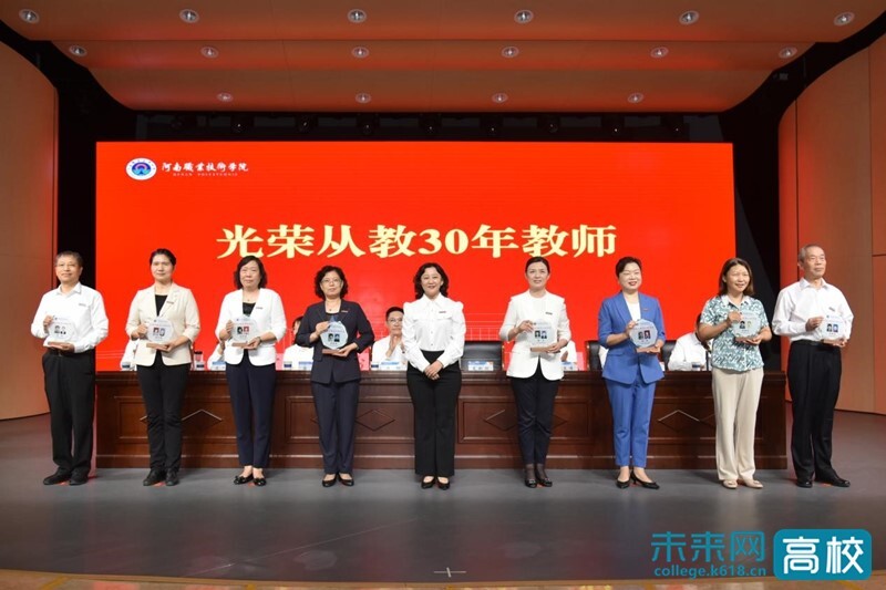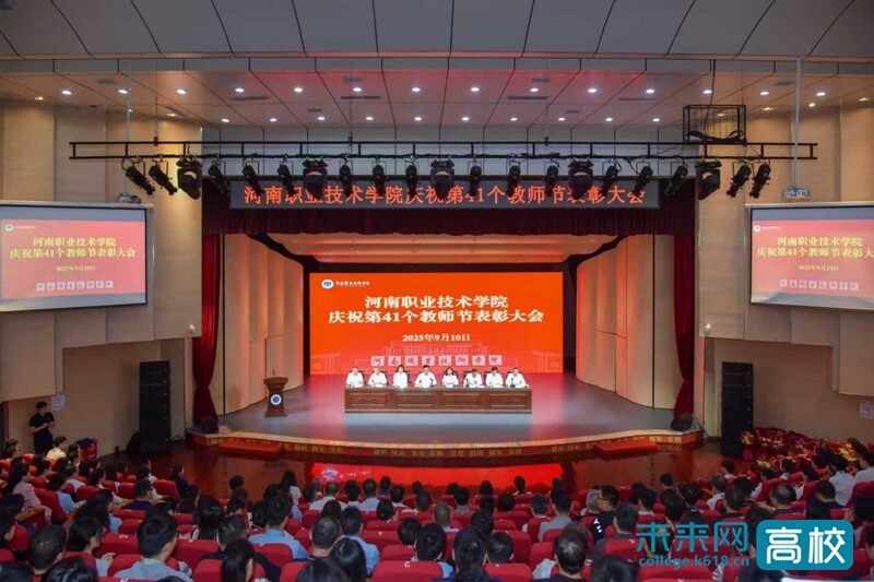 9月10日上午,河南职业技术学院召开庆祝第41个教师节表彰大会,表彰为学校发展作出贡献的先进集体和个人,并向全体教职员工致以节日问候和崇高敬意。学校领导厉励、夏新颜、肖珑、李玉峰、盛兴文、任枫轩、鲁冬出席会议。学校副科级及以上干部、受表彰教师代表及部分师生代表参加会议。学校党委委员、副校长朱永宽主持会议。