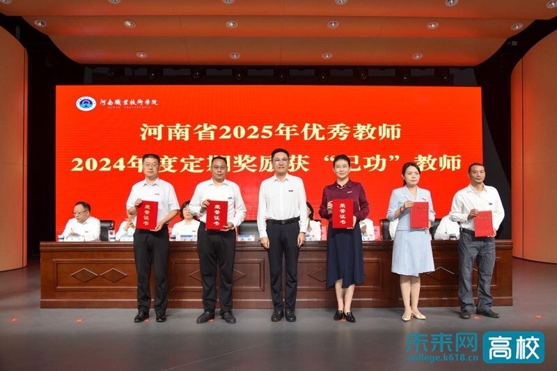 会上,学校党委委员、副校长李玉峰宣读了河南省2025年优秀教师、2024年度河南省事业单位人员定期奖励“记功”教师、2022-2024年突出贡献人员、光荣从教30年教师、2024-2025年度“三育人”先进个人的相关表彰文件。学校领导厉励、夏新颜、肖珑分别为受表彰教师颁发荣誉证书和纪念奖牌。刘拥军、王利琴、张一宁、童俊艳、王蕊等五位教师代表,结合自身工作成长经历,从科研创新、教书育人、管理服务等方面分享了心得体会;学生代表史文琪围绕自身求学经历表达了对师长关怀的感恩之情。随后,学校党委副书记、校长夏新颜带领与会全体教职员工重温教师誓词,进一步坚定职业信念,增强责任感、使命感与荣誉感。