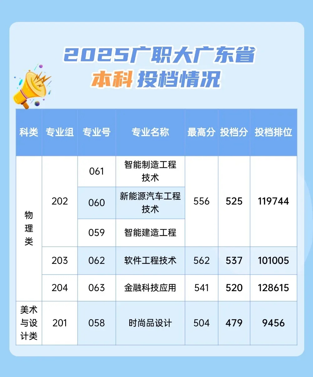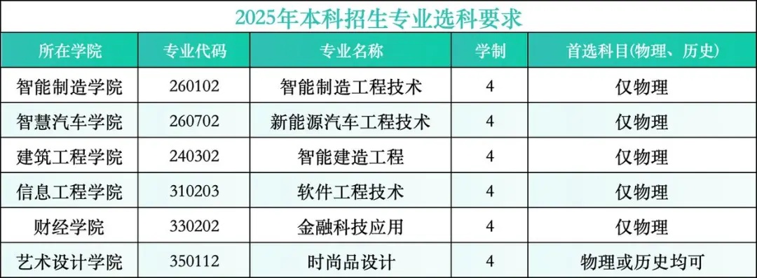据悉,广州职业技术大学首批设置6个本科专业,分别为智能制造工程技术、新能源汽车工程技术、智能建造工程、软件工程技术、金融科技应用和时尚品设计,共招生470人。6个本科专业均为四年学制。其中,除时尚品设计专业的首选科目为物理或历史均可,其余专业的首选科目均为物理。