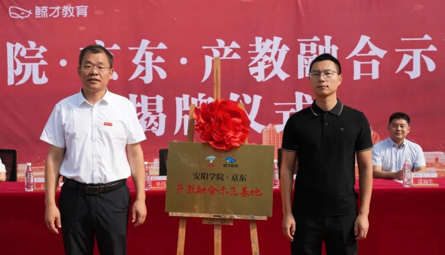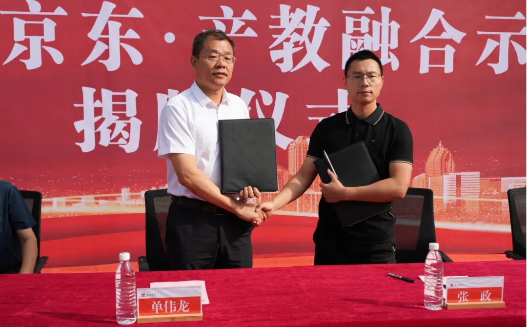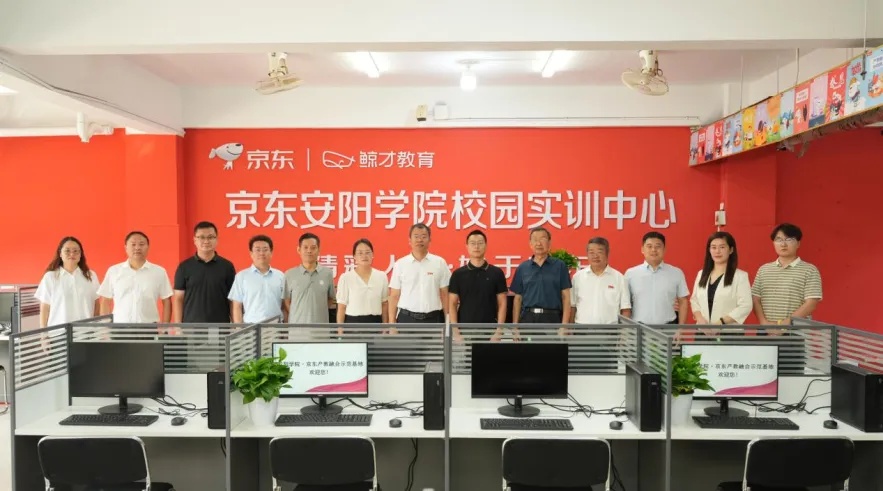 在全体参会人员的见证下,校企双方代表共同签署了产教融合框架协议,携手为“安阳学院京东产教融合示范基地”揭牌,标志着双方合作迈入实质性阶段。仪式落幕后,与会领导与嘉宾一同前往示范基地开展参观指导,实地察看基地的功能分区、设施配备情况,认真听取关于基地未来教学运行、项目开展的规划介绍,并对基地当前建设成效给予高度评价与充分肯定。