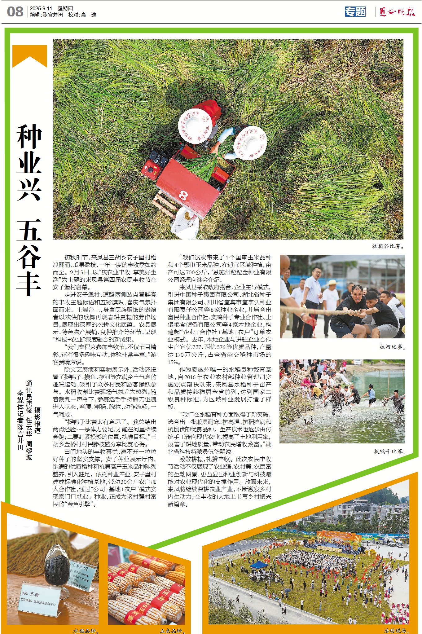 致敬耕耘,礼赞丰收。此次农民丰收节活动不仅展现了农业强、农村美、农民富的生动图景,更凸显出种业创新与科技赋能对农业现代化的支撑作用。放眼未来,来凤将继续深耕农业产业,不断激发乡村内生动力,在丰收的大地上书写乡村振兴新篇章。(全媒体记者陈宫井田 通讯员唐俊 任云华 周黎波 摄影报道)