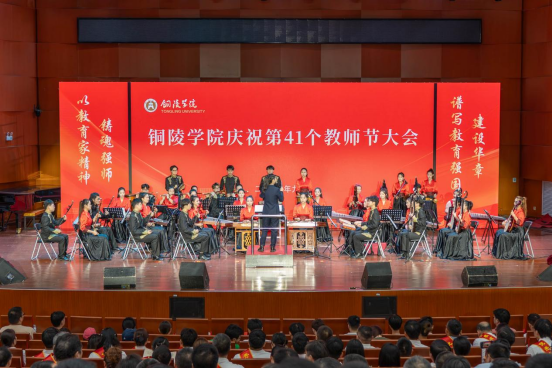 以教育家精神铸魂强师,谱写教育强国建设华章。9月10日下午,铜陵学院在艺术楼音乐厅隆重举行庆祝第41个教师节大会。获2025年教职工荣誉体系表扬的教职员工、2025年新入职教师、该校领导、各二级学院党政主要负责人、机关各部门主要负责人、师生代表等现场参会。大会同步进行线上直播。