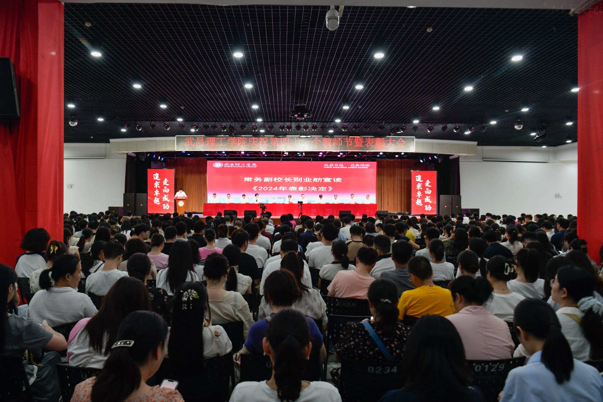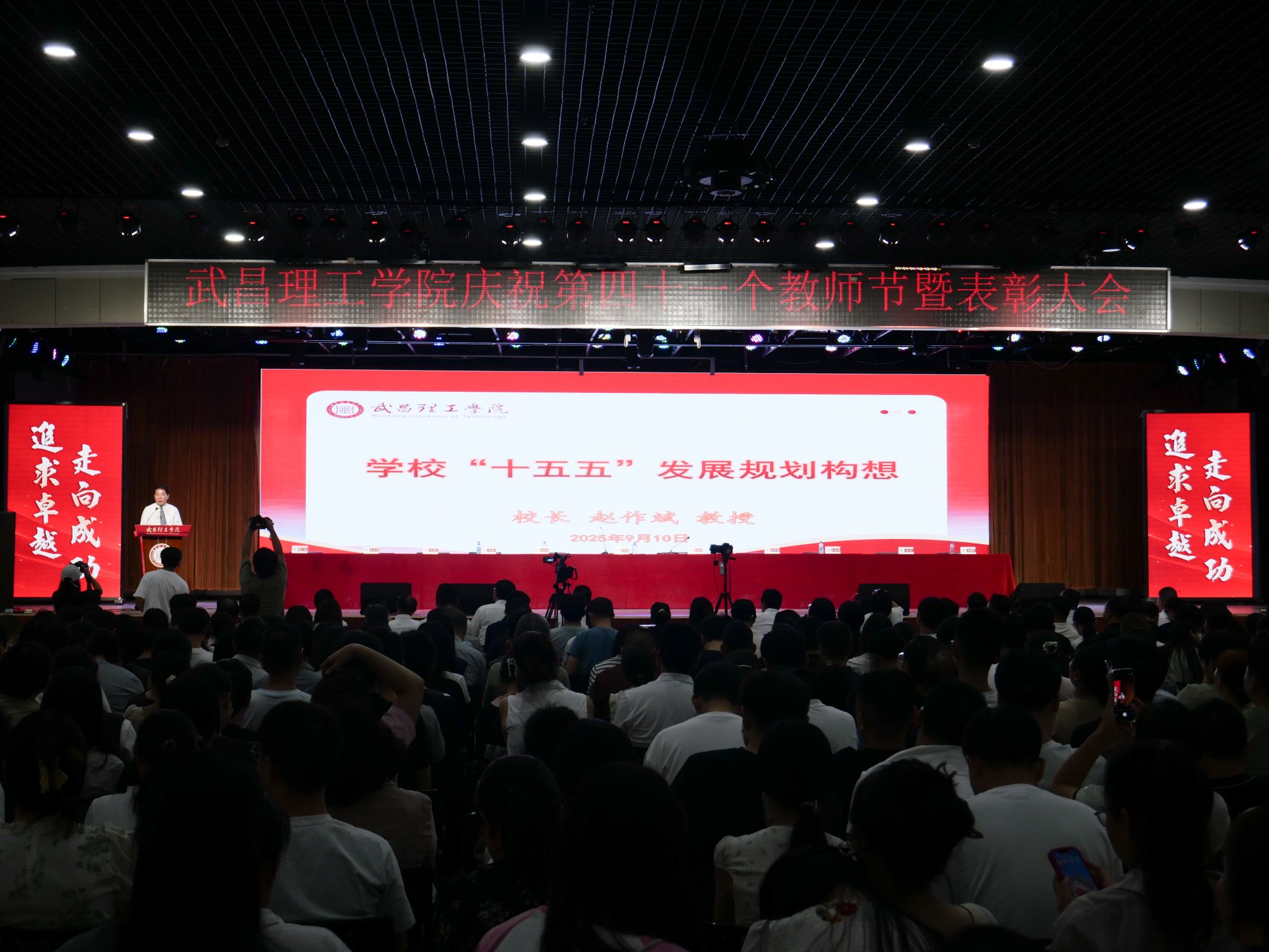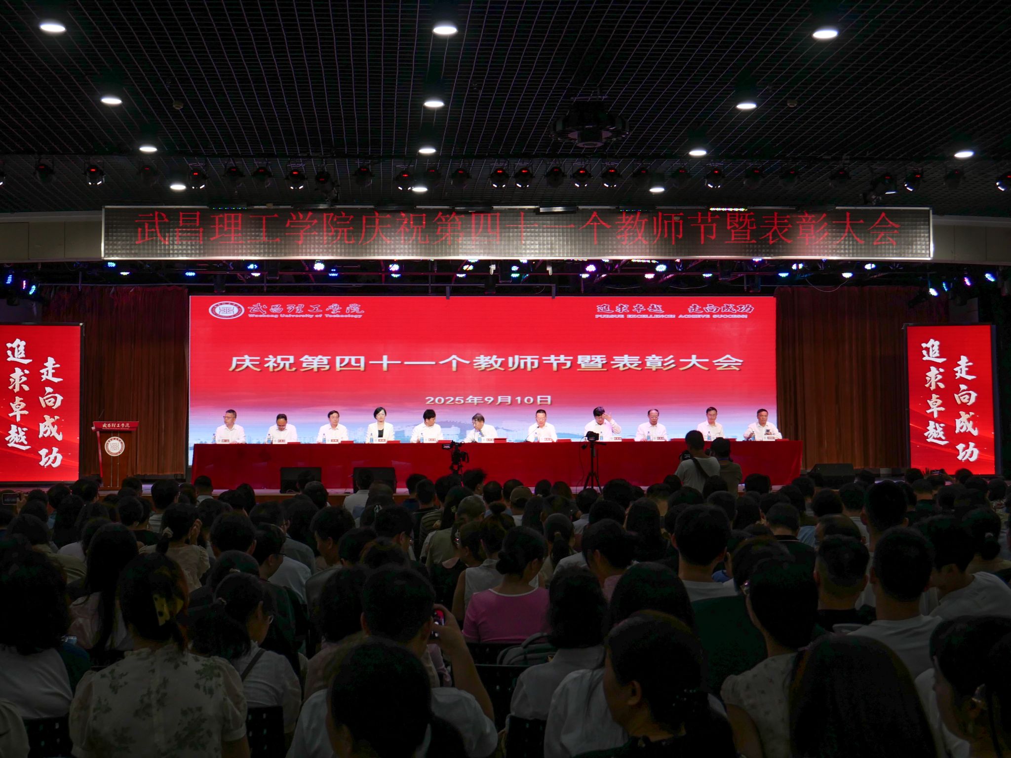 汤逊湖畔金秋送爽,梅南山下丹桂飘香。9月10日下午,武昌理工学院在大学生活动中心梅南礼堂隆重举行2025年教师节庆祝大会暨表彰大会。图书馆二楼报告厅设分会场,部分教职工通过观看线上直播参会。全体近1300名教职工齐聚一堂,共庆佳节。全体校领导出席,大会由校党委书记高建勋主持。