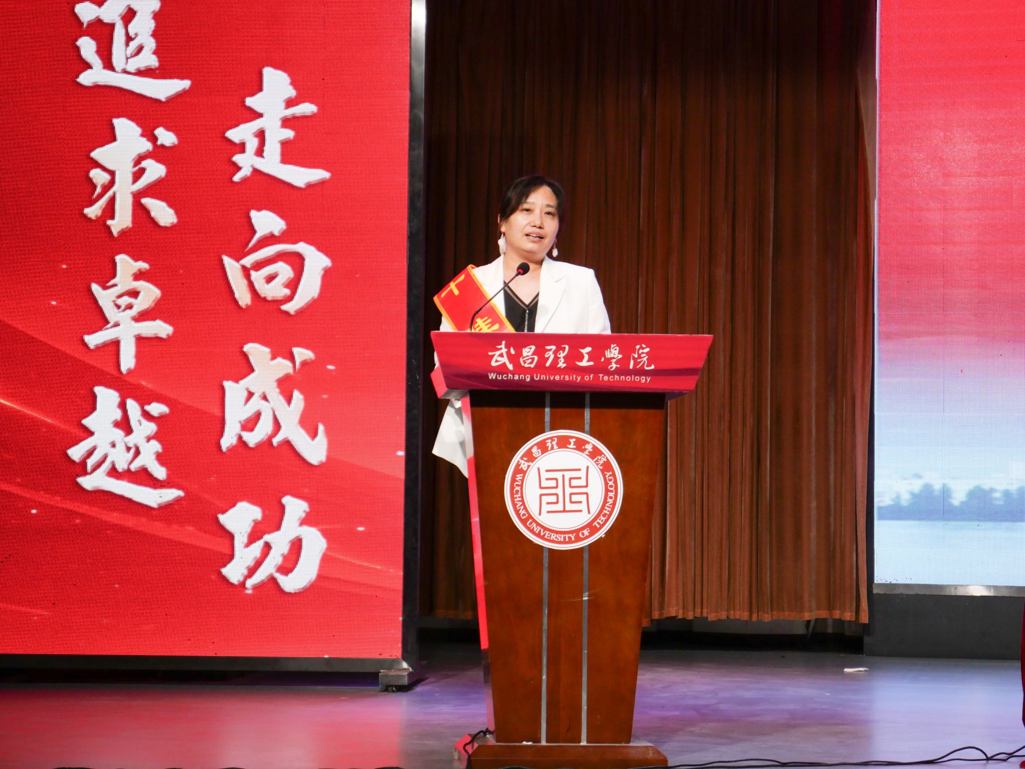 随后,“十佳教师”代表、“十佳科研标兵”代表、“十佳管理标兵”代表以及“优秀院长”“优秀书记”依次发言,分享他们在教学、科研、管理一线的经验和感人事迹,表达了对教育事业的热爱与执着,赢得了现场阵阵掌声。武汉校友会的20余名校友代表专程赶回母校,向老师们献花致谢,表达了对母校及老师们的感恩之情。