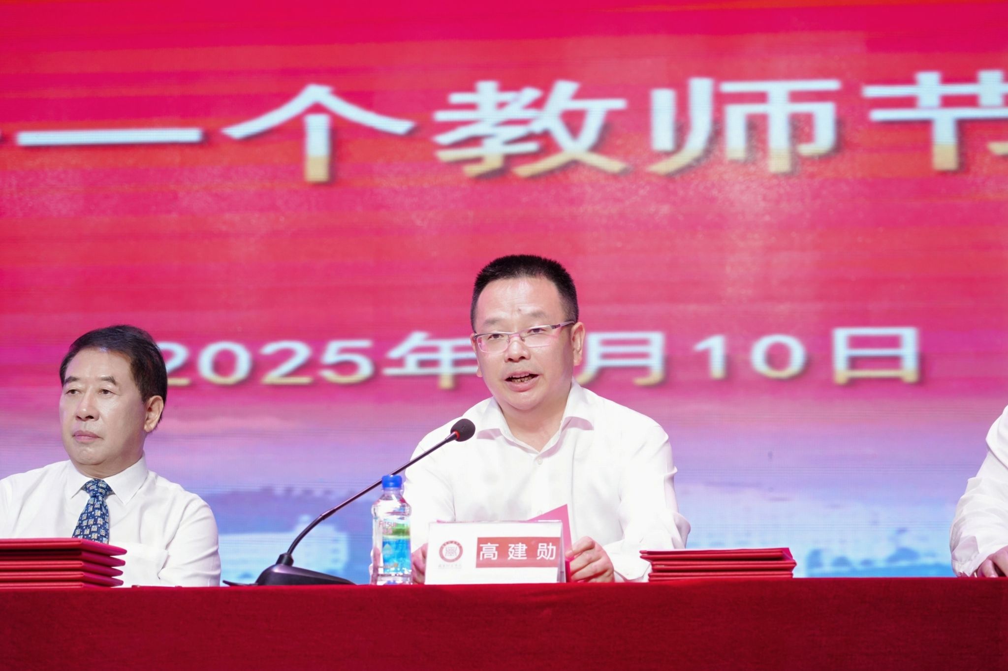 校党委书记高建勋表示,从表彰的教职员工身上,深切感受到了他们对教育事业的热爱和执着,体现了“追求卓越、走向成功”的校训精神。我们要大力弘扬教育家精神,持续挖掘、选树和宣传优秀教师典型,讲好育人故事,传递教育正能量。希望受表彰的教职员工珍惜荣誉、再接再厉,继续发挥表率示范作用,为学校的发展再立新功。号召全体教职员工以先进为榜样,学习他们爱岗敬业、甘为人梯、献身教育的崇高精神,努力提高自身的业务水平和综合素质,与学校共发展、与事业共进步!