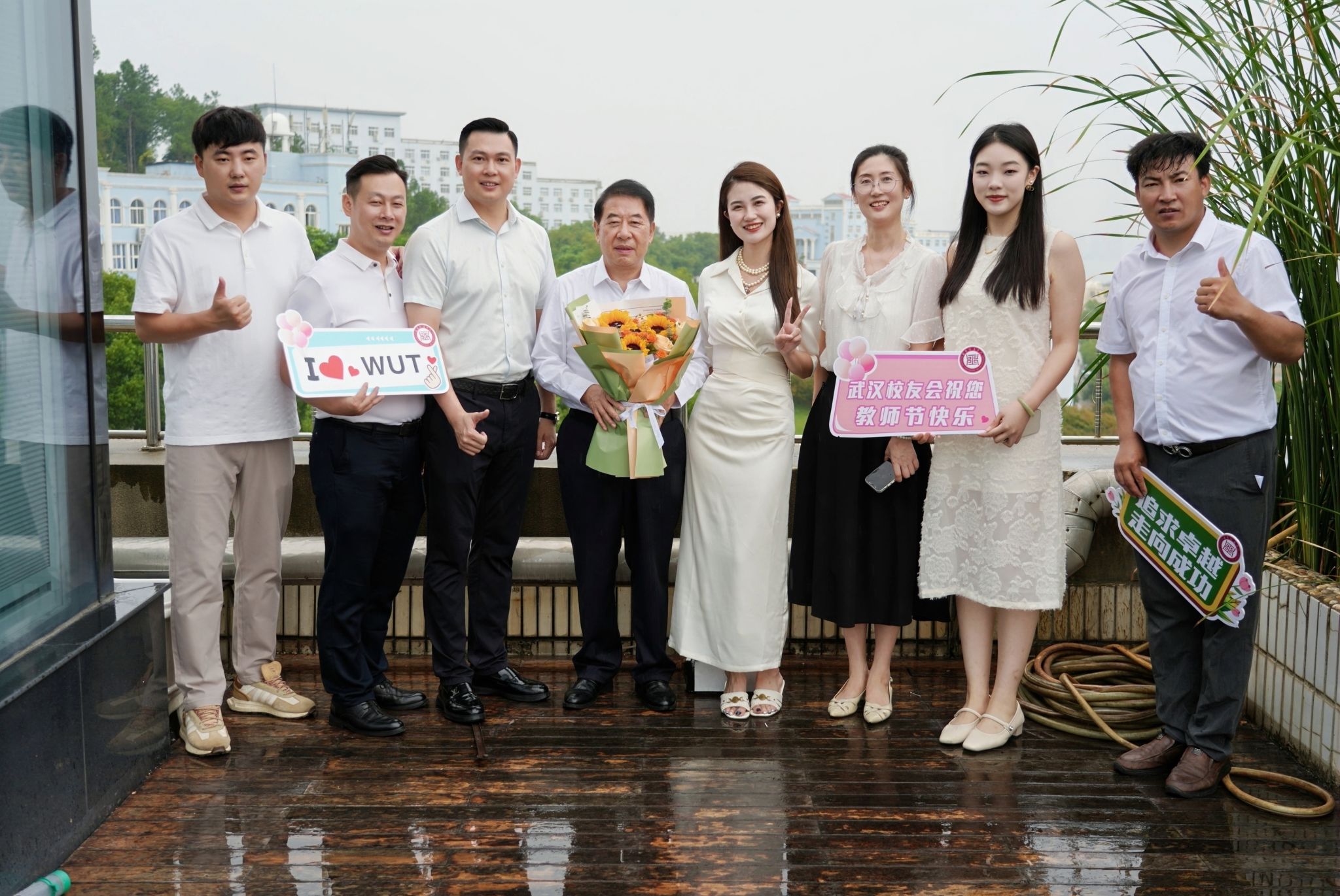 9月10日教师节,武昌理工学院迎来一批“特殊家人”——武汉校友会20余位校友代表集体返回母校。当日上午,他们手捧鲜花,穿梭在校园的行政楼、各学院办公室,为昔日恩师送上节日祝福,表达对母校和老师们的感激之情。当日下午,学校2025年教师节庆祝大会暨表彰大会举行,武汉校友会会长许锐煜、轮值会长三忠轩携10余名校友代表登台,集体向老师们献上鲜花与贺卡,引来全场热烈掌声。